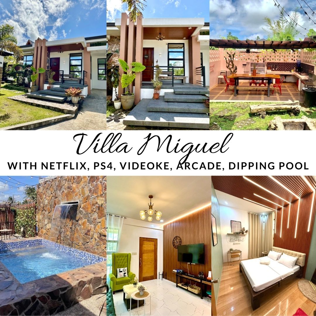 Unwind at Villa Miguel 🏡✨ Modern Scandinavian bungalow just 5 mins from Tagaytay! ✔️ 3 AC bedrooms (up to 10 pax) ✔️ Private dipping pool (2m by 3m) ✔️ Outdoor kitchen & bonfire ✔️ Peaceful vibes + cool breeze 🎮 PS4 + classic arcade machine 🎤 Videoke + board games for all ages Your serene escape starts here. 🌿