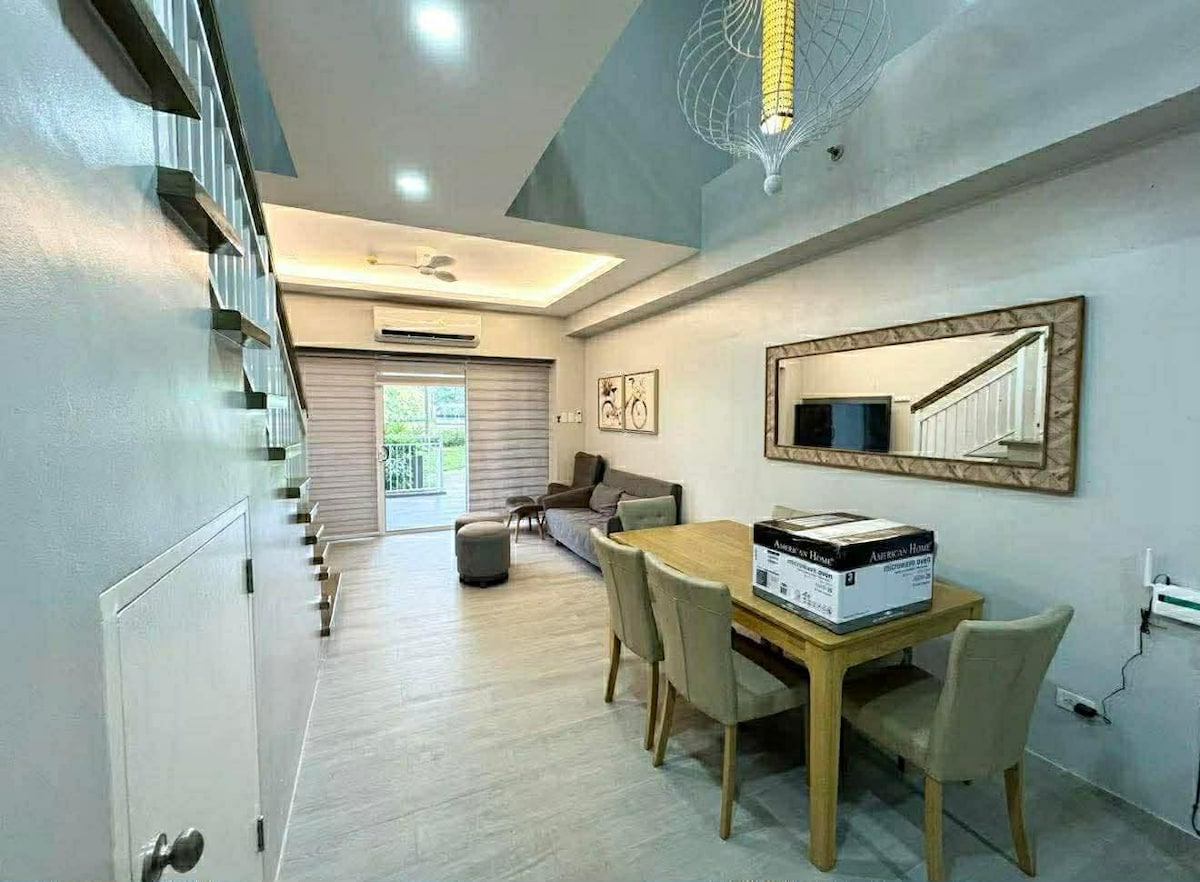 *Lovely 55 sqm 1 bd quality unit in Myna B, separate kitchen layout, cozy bedroom -LR/DR combo, with balcony and sink & patio furniture to dine out. *Unit has hot & cold water in the shower room *55 " Samsung Curved UHDTV, internet connection up to 400 mpbs *Fully equip kitchen w/ toaster, rice cooker, kettle, ref, microwave, air fyer, plates & glasses of your choice, kitchen towels, dish soap. *Free guest parking & with internet.