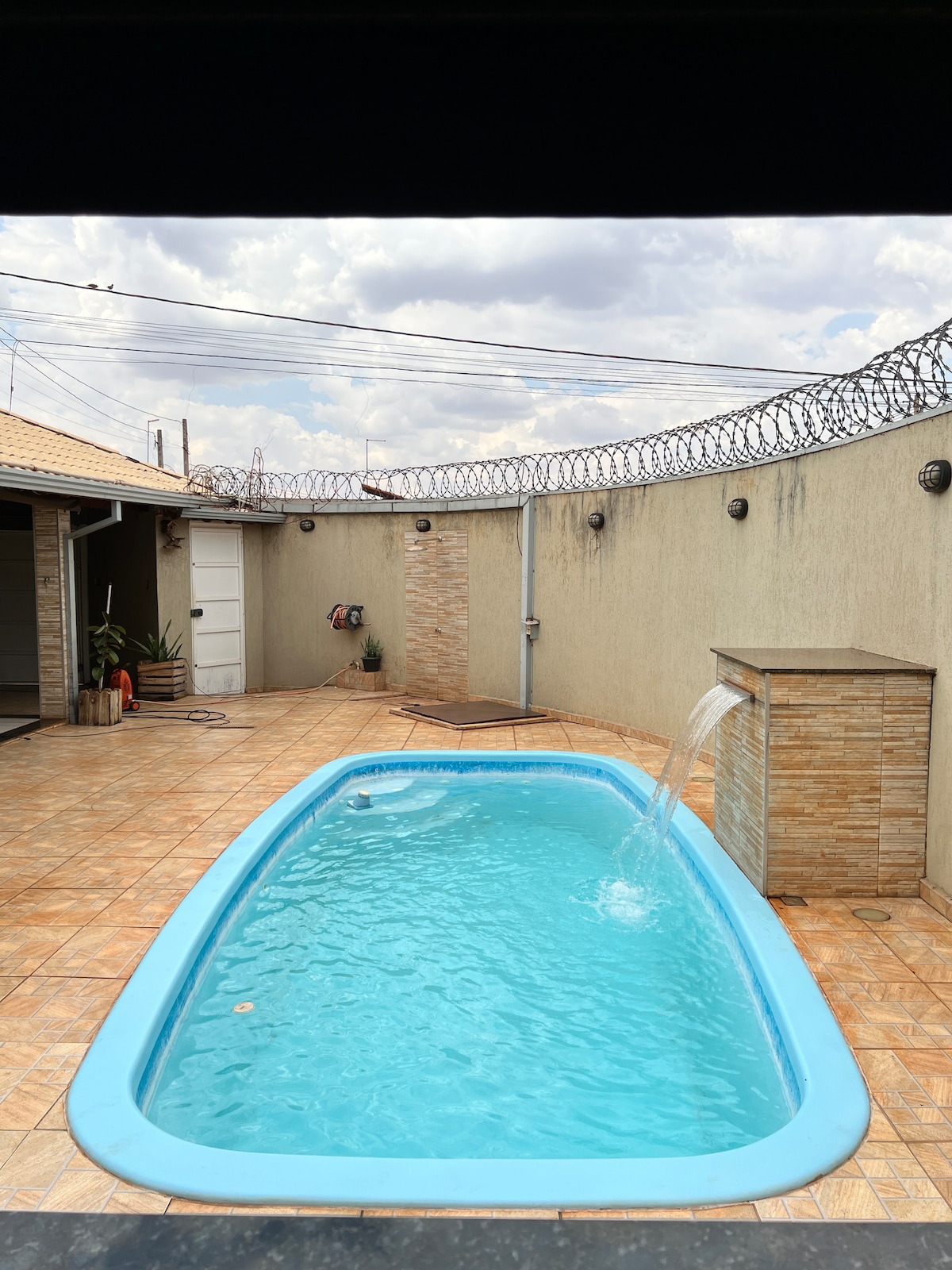Sobre este espaço Área de lazer mobiliada, com piscina, cozinha completa, internet e 2 quartos. - Quarto 1: duas beliches e ventilador; - Quarto 2: duas beliches, uma cama de casal e ventilador; 2 banheiros com chuveiros e espelhos; Fácil acesso com 2 vagas para veículos na garagem. Acesso do hóspede A locação inclui o espaço total da casa.