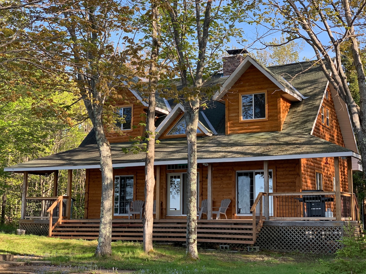 Our Cabin is a 2 bedrooms, 2 baths, laundry, screen in porch with hot tub, tv with internet in living room and bedrooms. Wood stove, a fully equipped kitchen. Master bedroom has a king size bed that can be split to make 2 twin extra long. The second bedroom can be set up as king bed or 2 twins with trundle bed. The cabin is ground level for accessibility by wheel chair and the bathrooms are wheel chair friendly. Searchmont Resort is 5 km away. Ontario Snow mobile trails go through Searchmont.