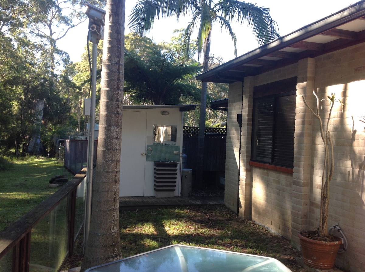 Cool, very spacious and super relaxed retro style cottage. Filled with travel treasures mixed with funky and functional retro stuff. A short drive to all the fabulous beaches, villages and national parks of Jervis Bay. The cottage is set amid towering gums and surrounded by a tropical, edible garden, with an emphasis on permaculture principles, including worm farms and frog ponds. Recycled and re-purposed items have been utilised to create garden art and to make a Byron-meets-Bali feel.