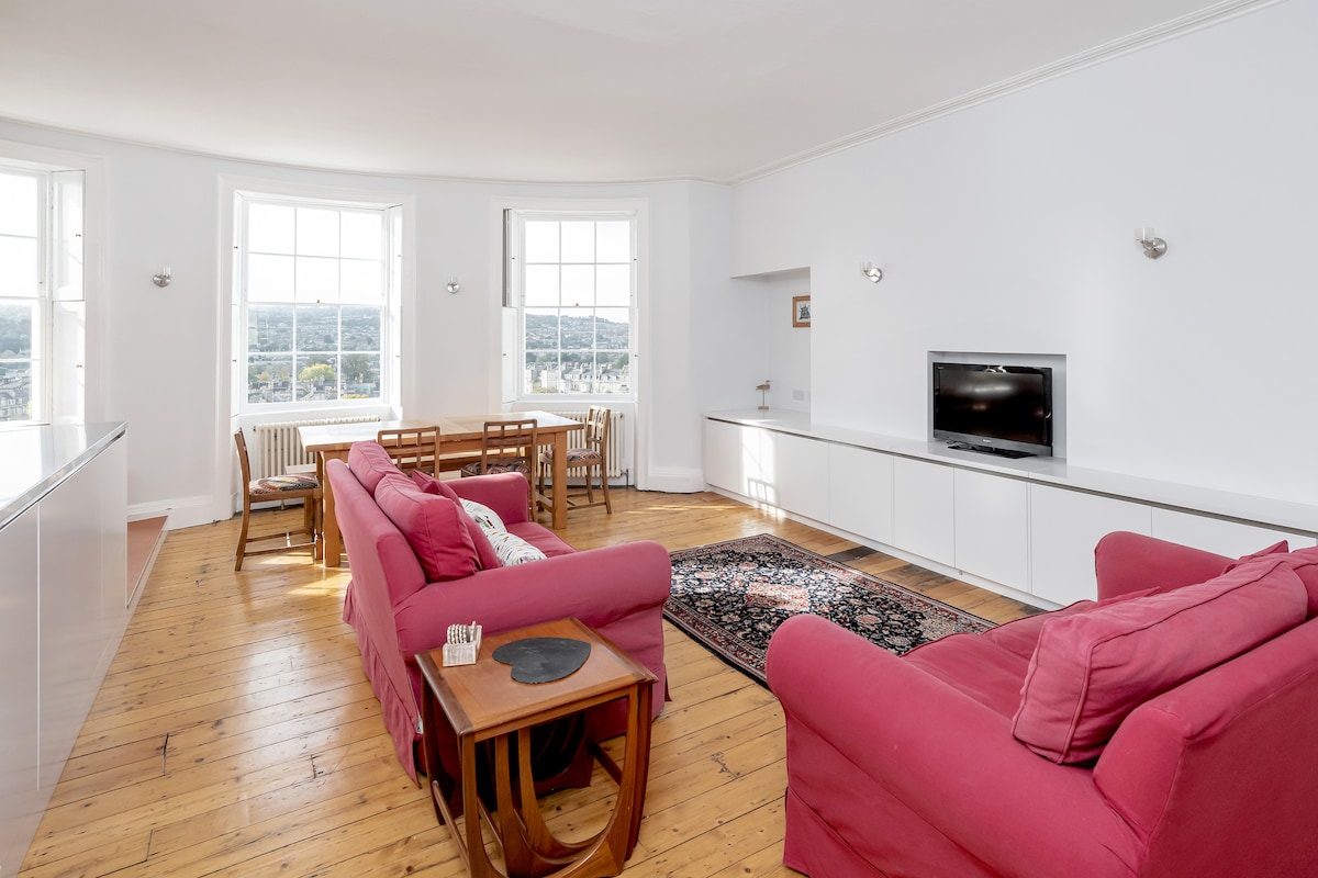This sumptuous, stylish apartment is located in one of Bath's elegant crescents adjacent to the artisan, Walcot street area and only a moment's walk from the bustling city streets. The property has been recently renovated to an exceptionally high standard, with open fire, free standing 'soup bowl' bath and separate rain shower. The luxurious kitchen is fully equipped with a Lavazza coffee machine, dishwasher and bronze fittings. The extensive views overlook Walcot street and hills beyond.