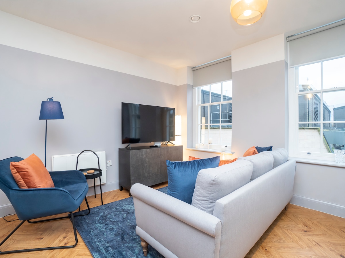 Elegant 3-bedroom Georgian apartment in the heart of Bath, sleeping up to 6 guests. Spread across two floors, this home blends period charm with modern luxury. Enjoy stunning city views from the living space and bathroom, plus a shared garden terrace. Perfectly located for exploring Bath's historic sites, restaurants, and shops on foot. Ideal for families and groups seeking a sophisticated city escape.