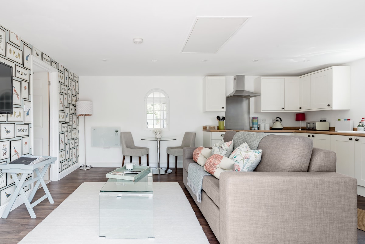 Bring in the day amid wood surfaces and classic cabinetry in a bright kitchen as you cook a delectable breakfast to enjoy on the garden patio. Sprawl out with a paperback on the sofa amid charming fixtures, nature-inspired decor, and hardwood floors. A 1 bedroom self contained bungalow in the grounds of our house, all newly refurbished with tasteful decor throughout. The bedroom has a double bed but we can also offer a sofa bed in the living room & travel cot (if needed).