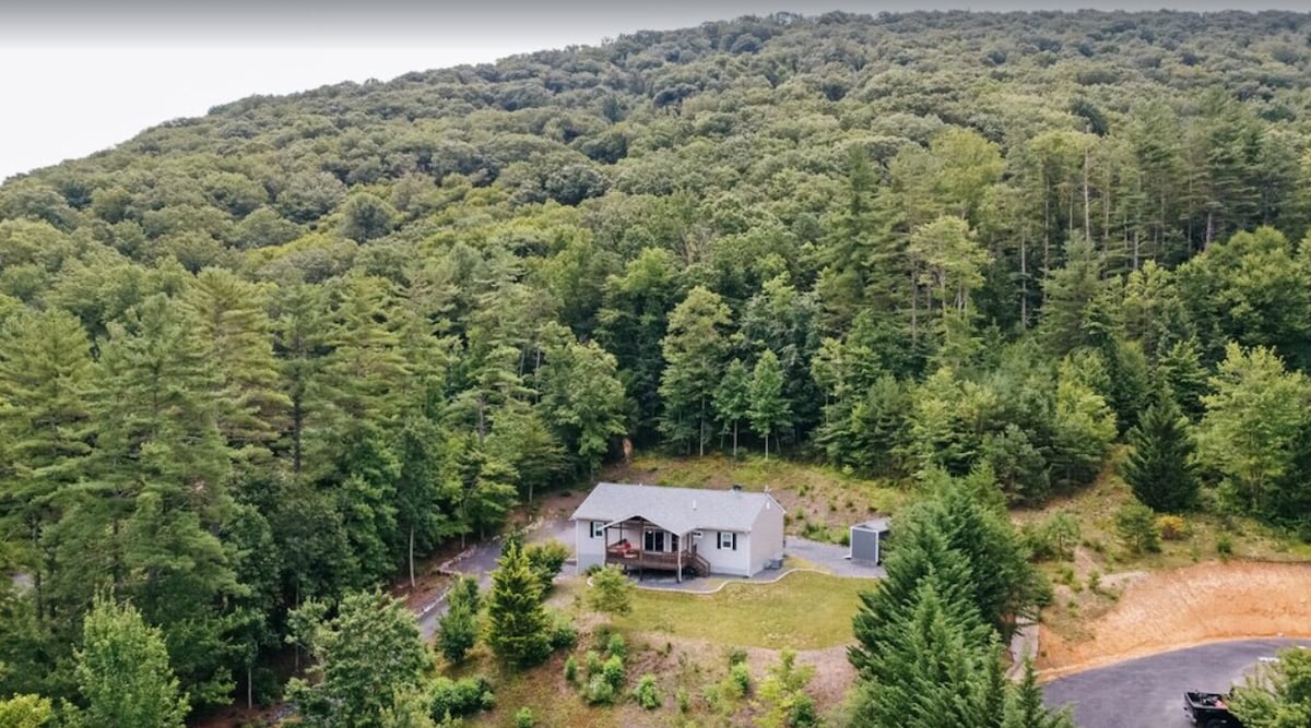 Enjoy the breathtaking scenery when you stay in this beautiful, brand new space. A transformed outbuilding has become a quaint guest cottage with all of the amenities of home. Full kitchen w/all cooking essentials, K-cup coffee machine, new appliances, granite counter tops, full bath w/private shower and a jacuzzi tub with mountain views. Wake up in your master bedroom to spectacular mountain views. Living room w/electric fireplace, large screen TV. Your own private deck/pergola/gas grill.