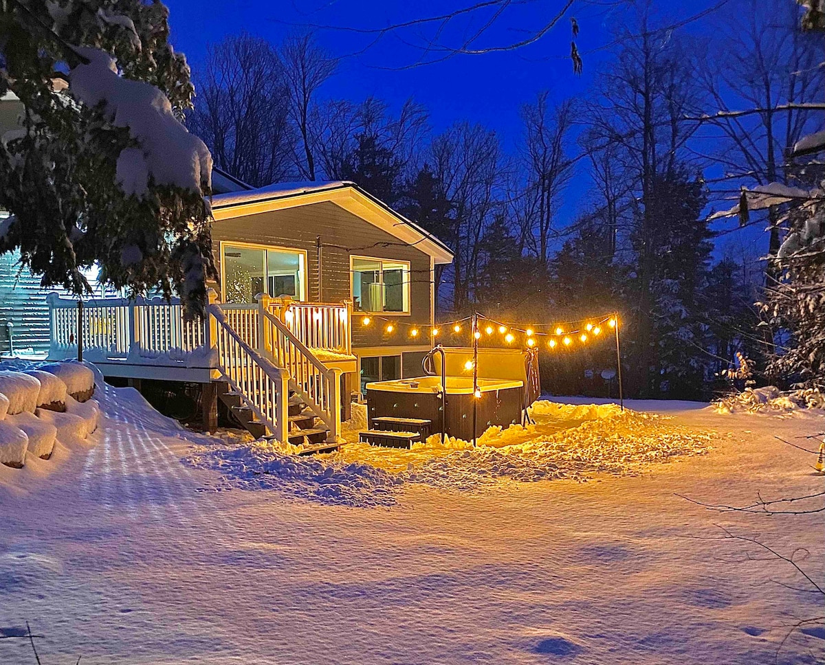 Our Secluded White Mountain Cabin is the perfect rustic retreat! Summertime at the cabin includes access to two lakes, a pool, tennis courts, boats, fishing and more!! Featuring a private outdoor hot tub for soaking under the stars, fire pit and cozy gas fireplace for snuggling up on cold winter nights. The cabin is close to the best hiking in the East, lakes, amazing ski resorts, craft breweries, coffee shops, restaurants of every kind and sightseeing!