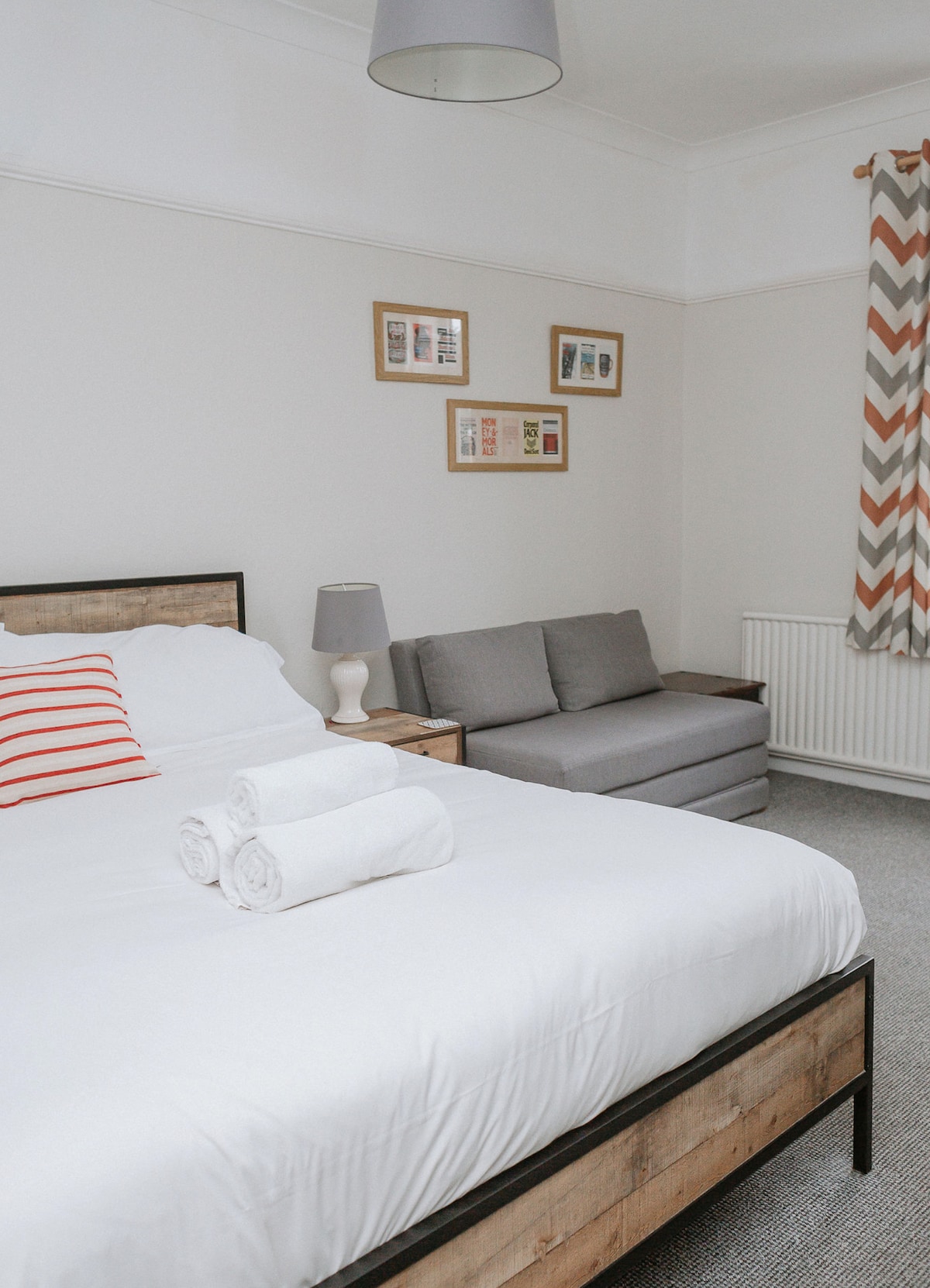 Nestled in the countryside at The Queens Chew Magna, this two-story room blends character, charm, and luxury. The first floor has a cosy lounge area with a sofa bed and flat-screen TV, perfect for relaxing. Upstairs, a King bed with an en-suite walk-in shower. Enjoy luxurious cushions, throws, and complimentary White Company toiletries. Tea and coffee-making facilities are included, ensuring a comfortable and restful stay.
