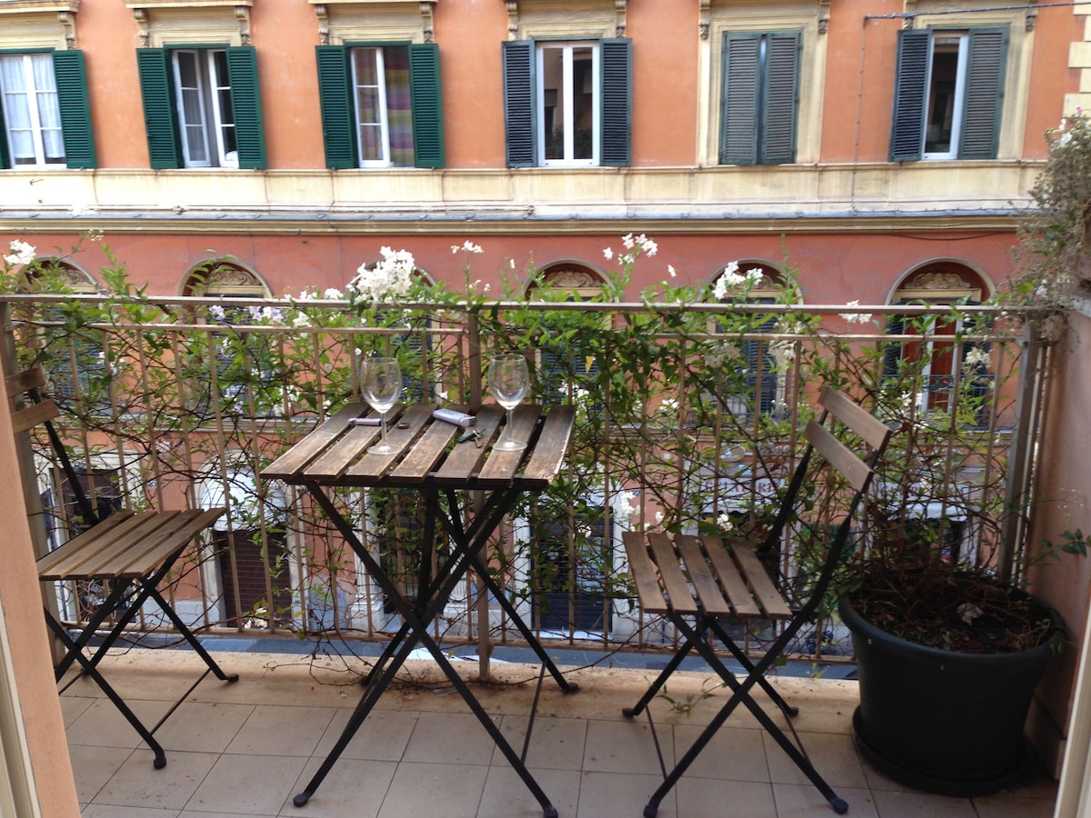 An authentic roman house, totally renovated with passion and love. From its windows you can admire one of the best views in Rome: the Tever river and the wonderful Castel Sant'Angelo. Its private silent terrace is the most romantic place where you can have dinner and breakfast in an authentic roman atmosphere. We can provide guided tours, bike rental, private car parking and private cooking lessons upon request, contact us for more information and price details.