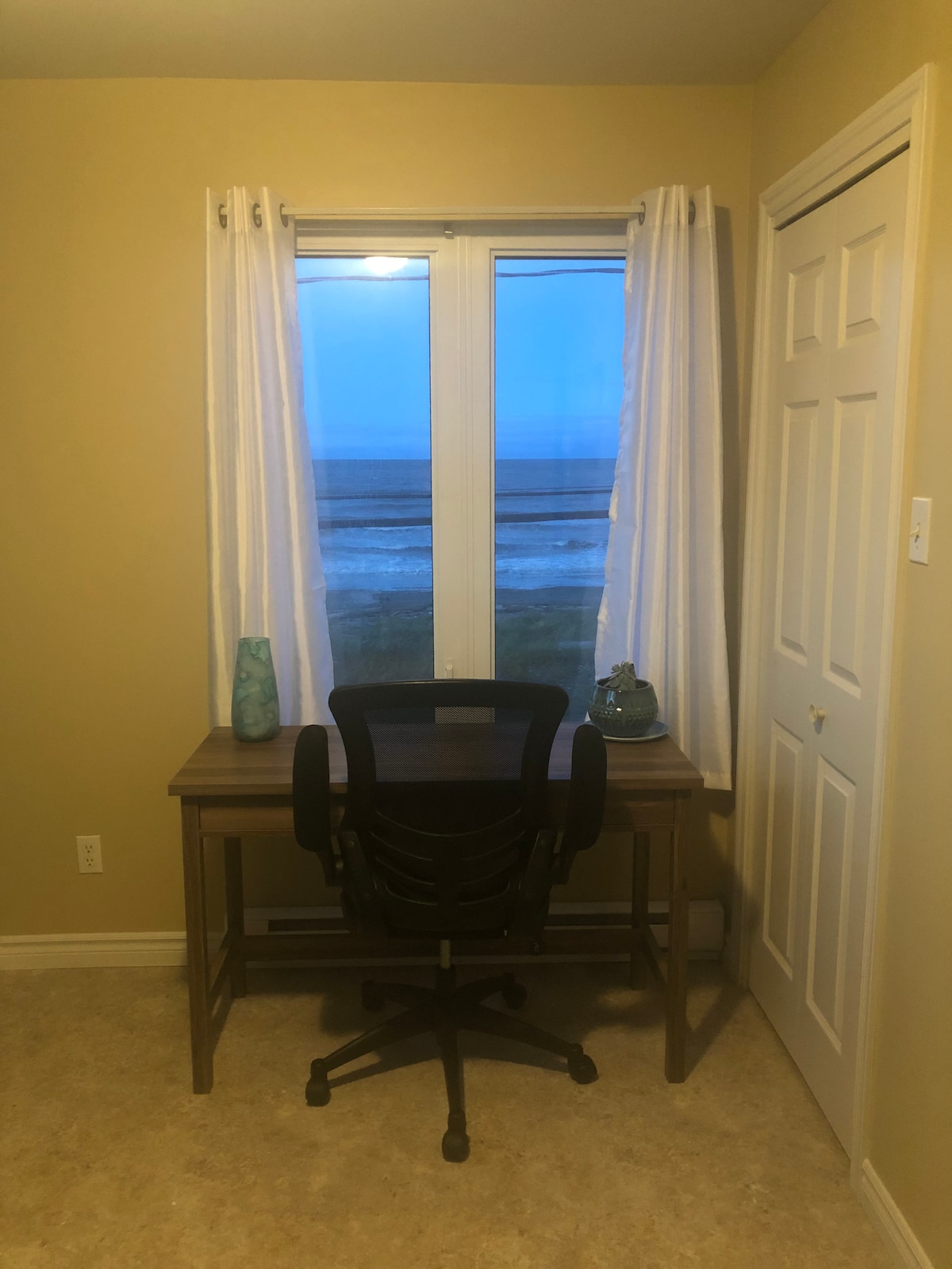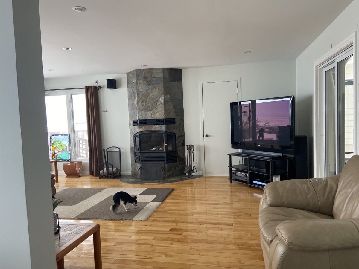 Chaleureux, serein et à 3 km de la ville. Avec vue sur la mer mais sans accès direct, vous entendrez cependant le bruit de la mer et pourrez savourer son parfum salin lorsque vous serez sur le grand patio avec une grande partie moustiquaire. Un accès est cependant possible, tout près au bout de la rue. Il y a aussi un espace pour faire un feu pour animer vos soirées. Que ce soit pour profiter du soleil, la vue imprenable sur la mer vous fera rêver bien après votre départ.