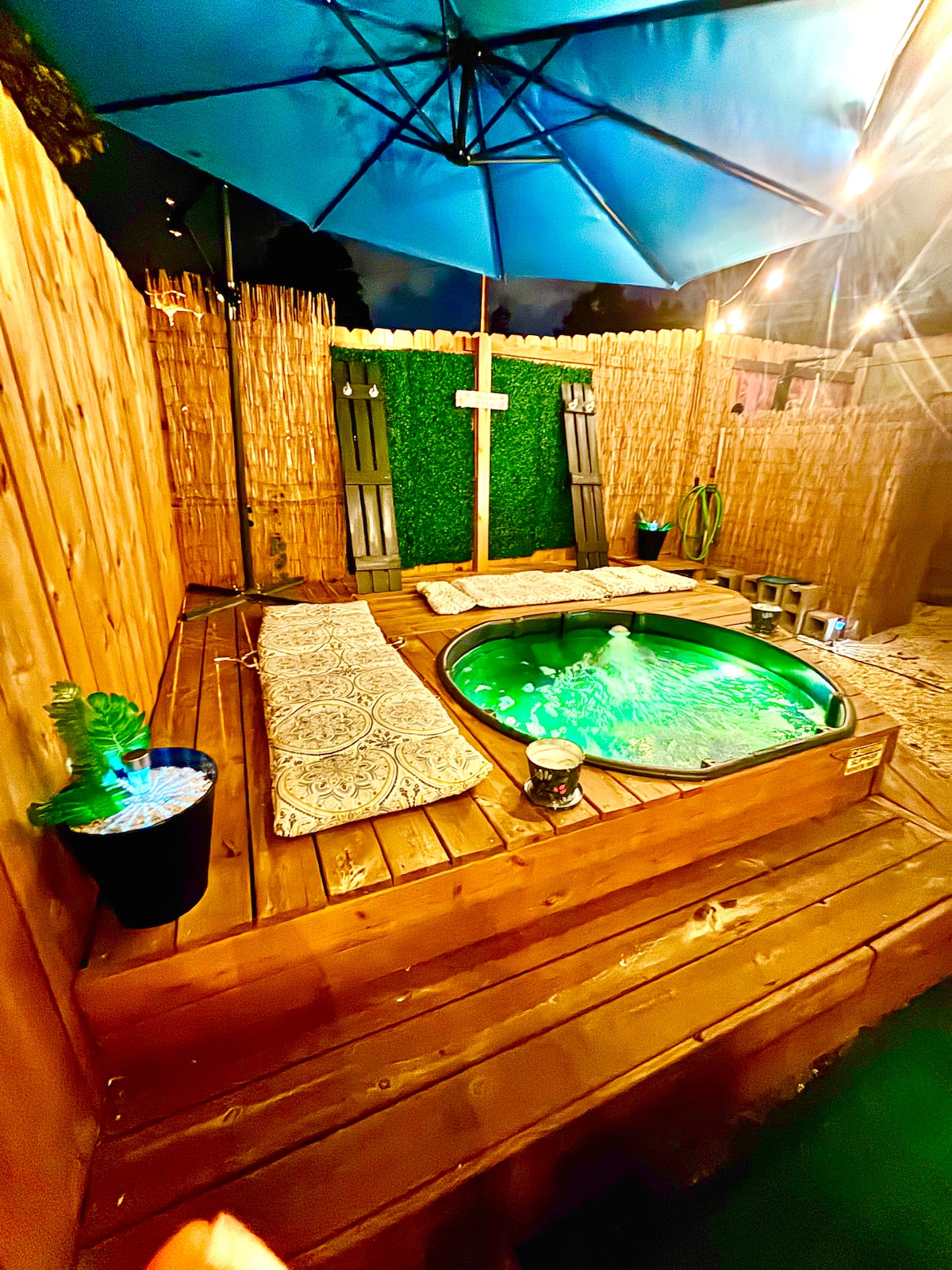 微型住宅热水浴缸烧烤和放松