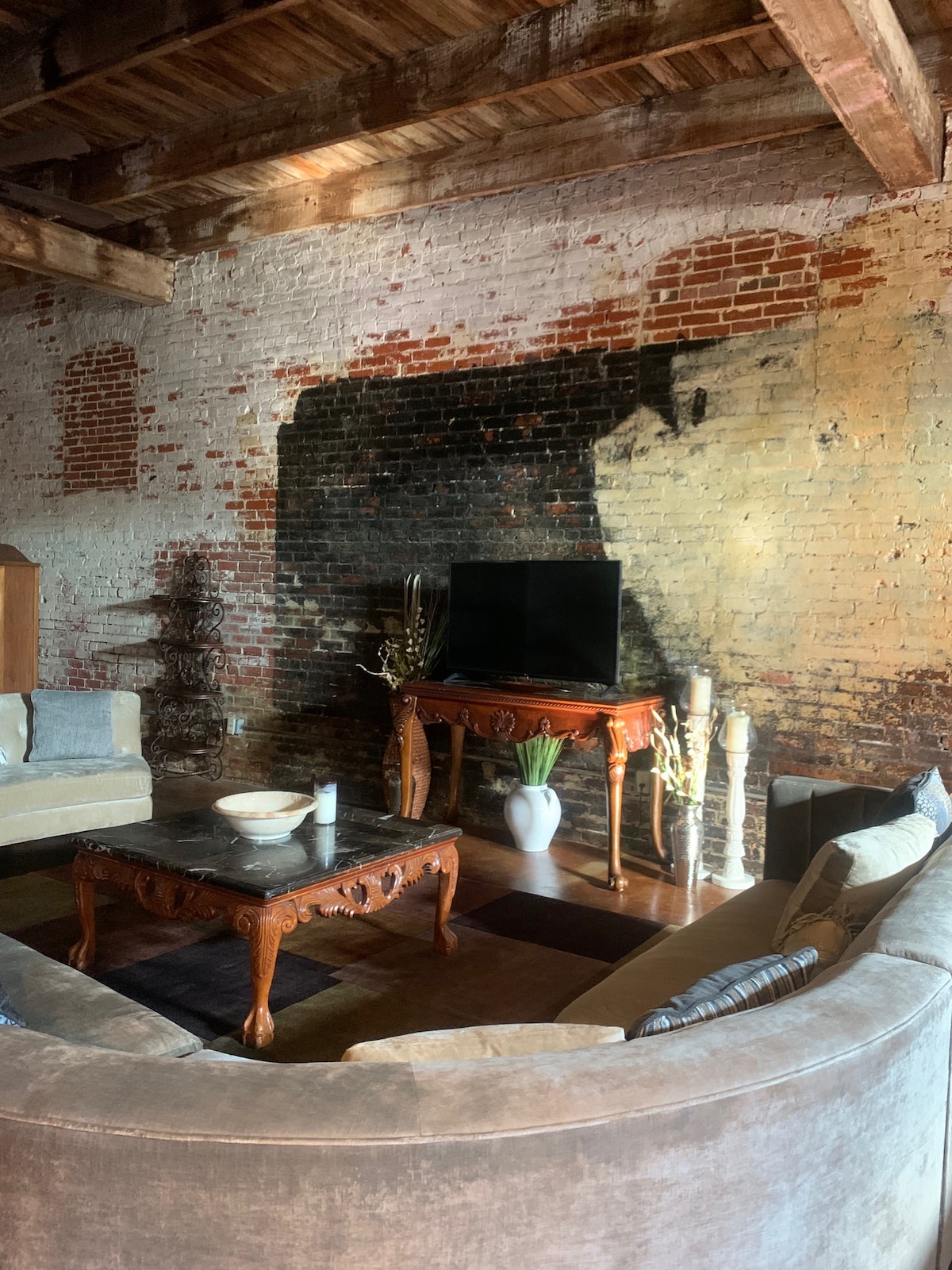 The whole group will be comfortable in this spacious and unique space. This 1800sf loft is the first completed space of historic preservation project located in the old Kinberger Grocery Store building, built in 1895. The building adjacent to this listing is still undergoing restoration. Too stunning not to share. Located one block from St. John the Evangelist Church and the Plaquemine Locks. Minutes from Dow and Shintech, and 20 minutes to LSU. Next to Railroad tracks, potential for noise.
