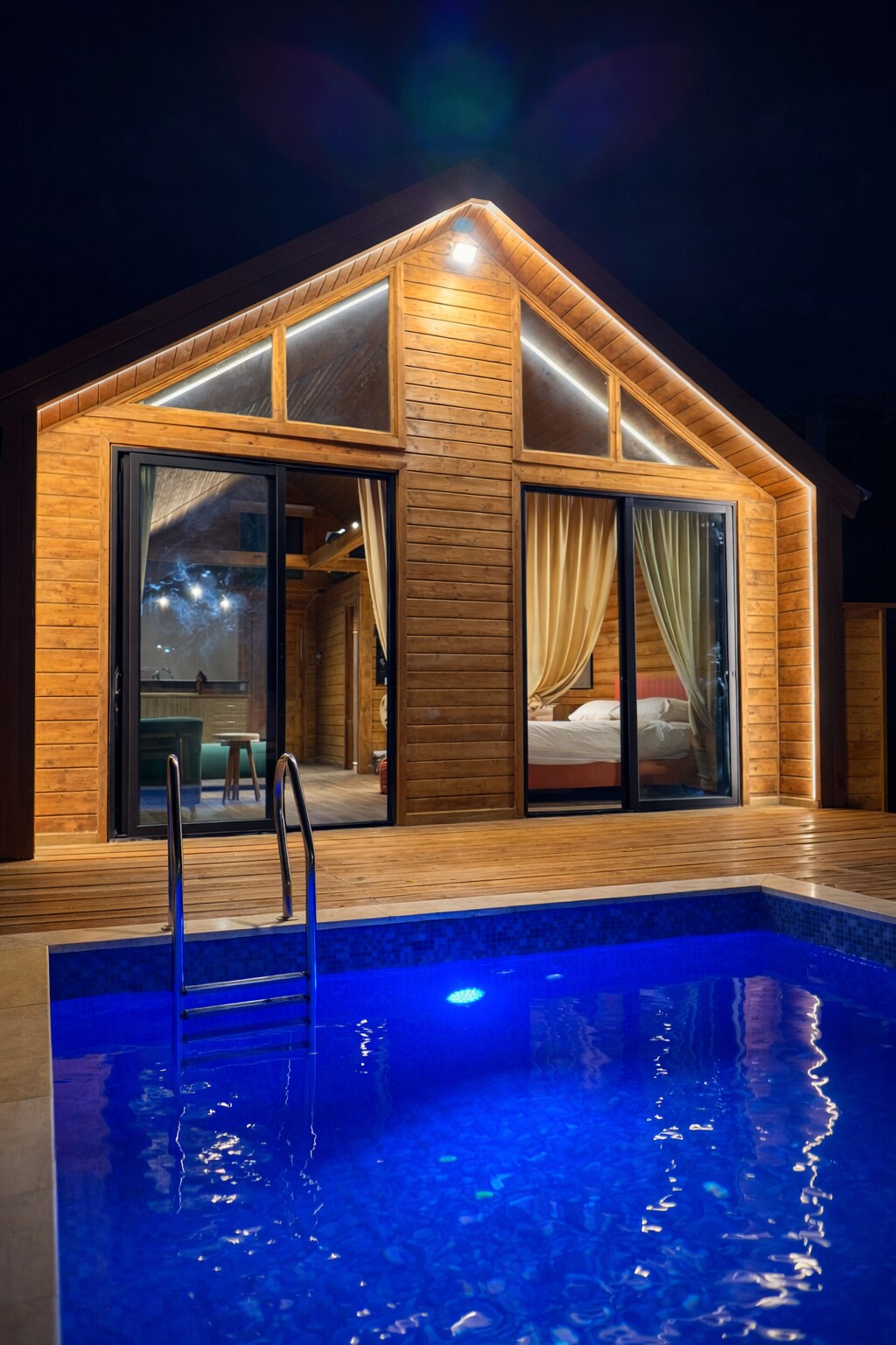 Kick back and relax in this calm, stylish cabin. Including a private pool.