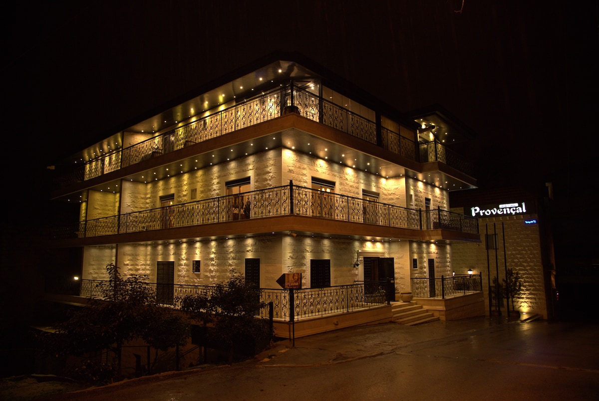 Welcome to Hotel Provençal, a boutique gem on Al Midan square in the heart of Ehden. Our Standard Rooms are warm and comfortable, featuring a King Size bed, AC, heating, free WiFi, fridge, microwave, and kettle — everything you need for a perfect mountain stay. Step outside and Ehden's best restaurants, cafés, and cultural sites are right at your doorstep. Our team is here anytime for anything you need.