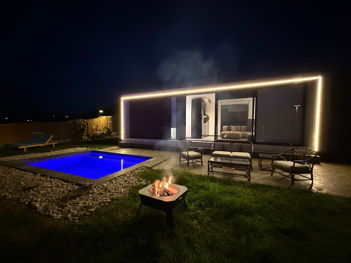 Escape to this peaceful modern house nestled in a green valley, just 10 minutes from the center of Batroun. Surrounded by trees, birdsong, and stunning views, it offers complete privacy and a true nature escape. Enjoy a private pool, lush garden, and stylish indoor comfort, perfect for couples, small families, or solo travelers seeking quiet and relaxation. Fully equipped kitchen, fast Wi-Fi, solar power, private parking, and 24/7 delivery,everything you need for a stress-free stay.