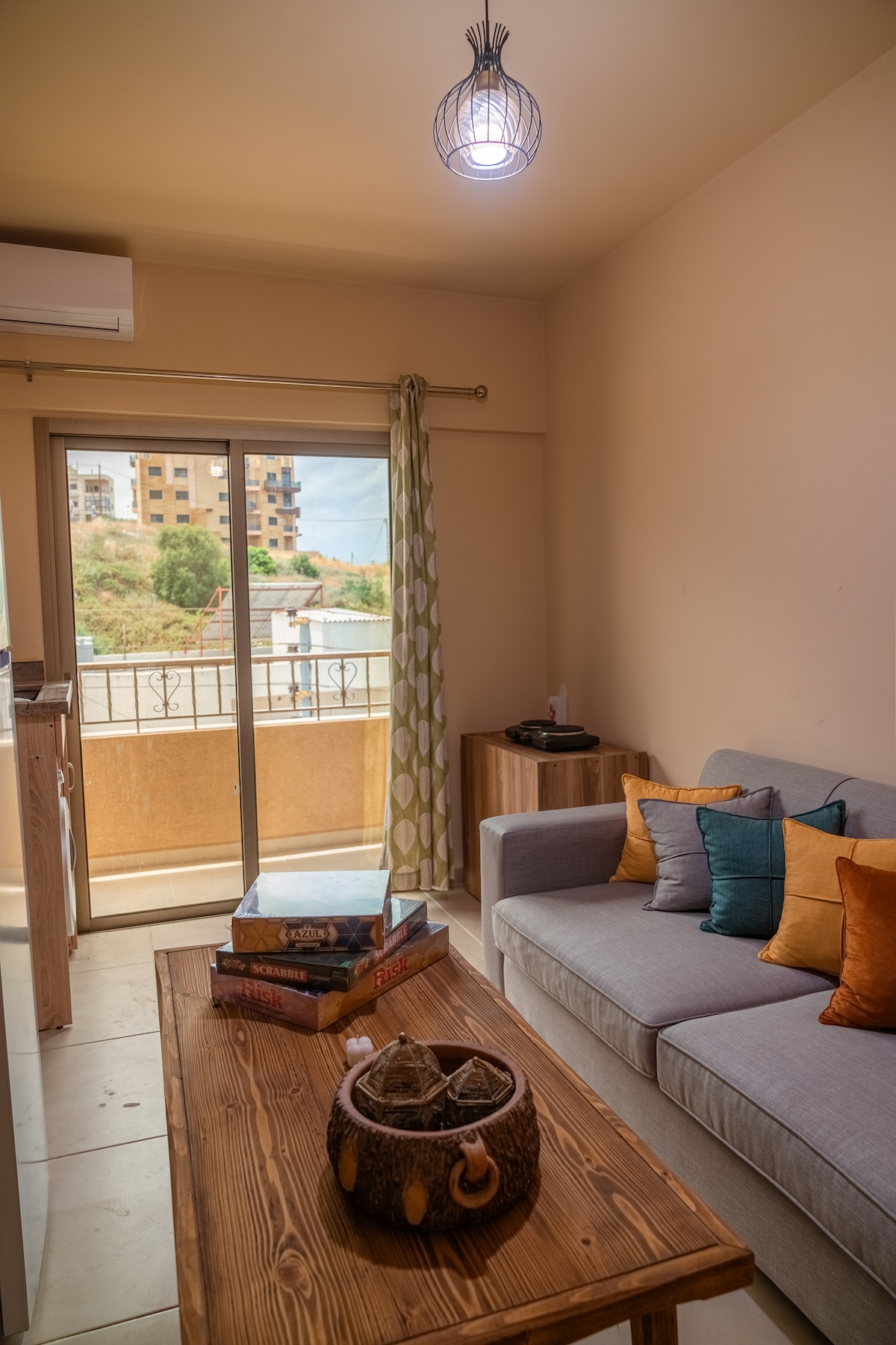 Welcome to your home by the sea of Anfeh! The Happinesst 2 is a peaceful guesthouse with 1 double bedroom, 1 living room with a daybed, a kitchenette (sleeps 2 to 3 people), and a shared balcony with The Happinesst 1. We’re a 1 minute walk from Anfeh’s Taht El Rih and the sea from any side.