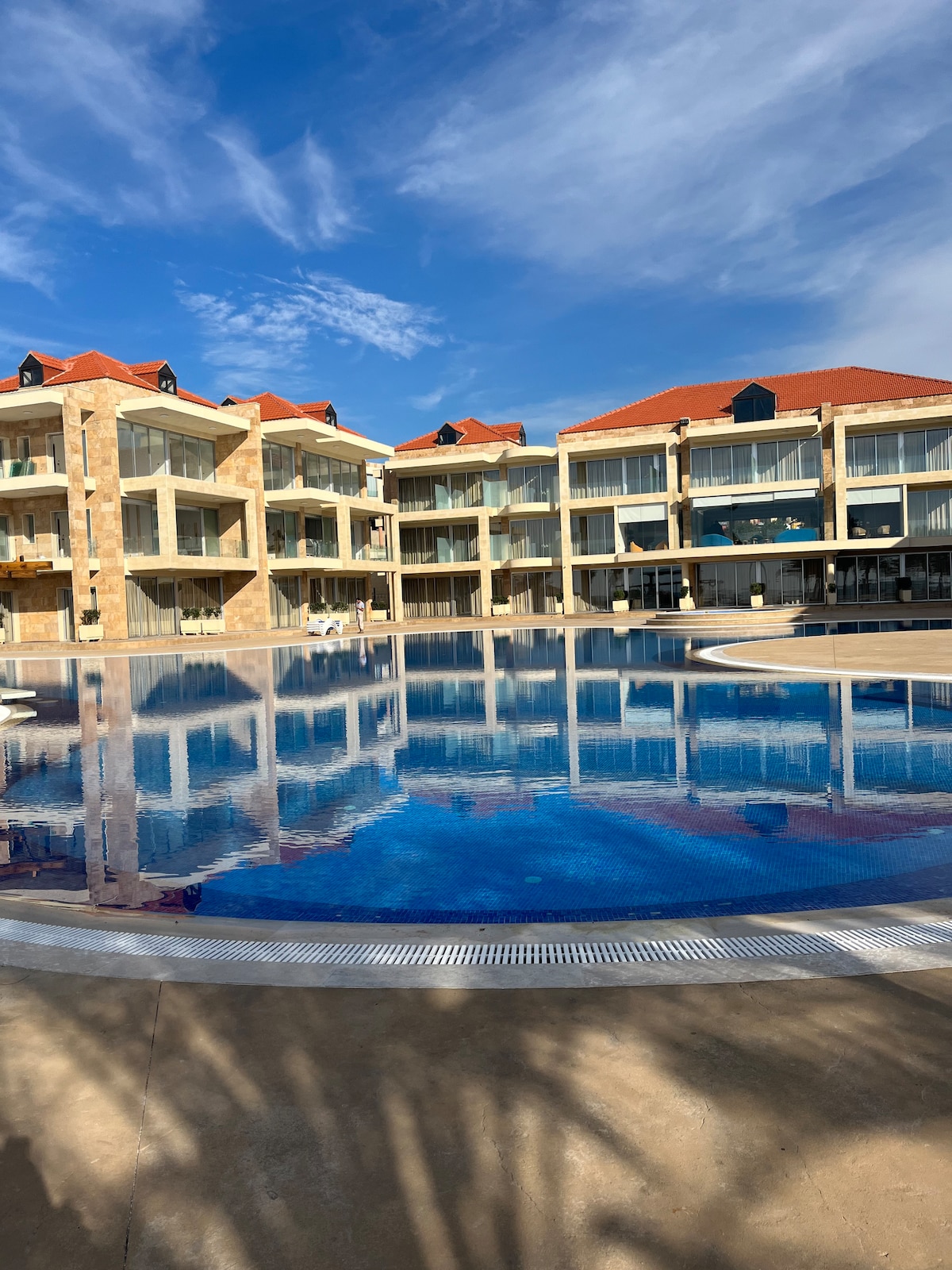Peaceful and chill place while having a private access to the pool, gym, sauna and tennis court. Traditional lebanese breakfast included and served at the guest’s convenient time. Parking available allowing very easy access to the cabin. Sea view through an infinity pool, sunsets are amazing