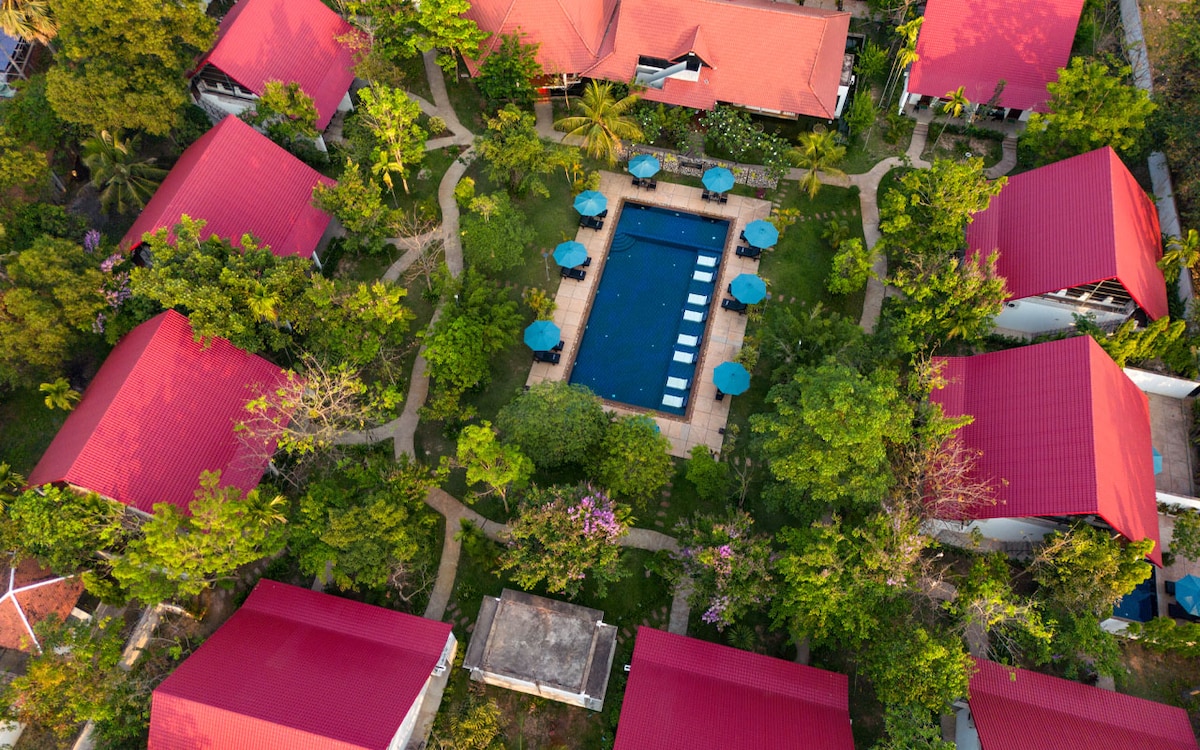 Unwind in a tree-shaded bungalow just 2 km from town, with a scenic village walk along the river leading to cafés, markets, and Siem Reap’s vibrant life. Treetop Bungalows offers 6 private, self-contained units with kitchens, living rooms, and balconies set among lush greenery. Share meals in the communal BBQ area, work with strong Wi-Fi, and explore with free bicycles or $1 tuk-tuks. Perfect for travelers seeking both peaceful retreat and authentic local culture.