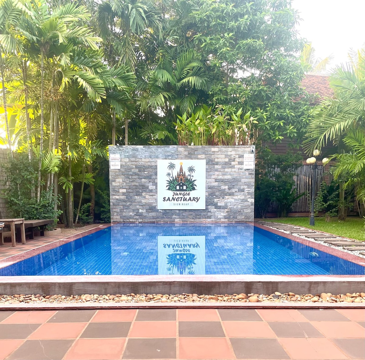 The Natural Khmer Style Villa with 12 units surrounding by a beautiful garden. Each unit is fully furnished. There is a swimming pool, an outdoor and indoor dining area. We offer local Khmer Breakfast, Lunch and Dinner. We can also arrange a Home Cooking Class for you. We are located in a quiet area 2.5 km from town center, Pub Street, night market, and just behind the circus, next to the horse riding farm and quad bike riding.