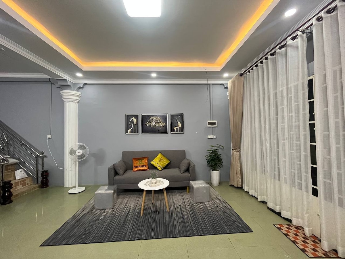 Welcome to Riverstone Home, a charming riverside retreat offering a peaceful stay just 500m from the fresh market and 1.2km from Battambang’s provincial hall. This fully-equipped house features 2 cozy bedrooms with air conditioning, a fully stocked kitchen, a comfortable living room, and a clean bathroom. Enjoy the convenience of free parking and easy access to local attractions. Surrounded by nature, Riverstone Home is your perfect home away from home.