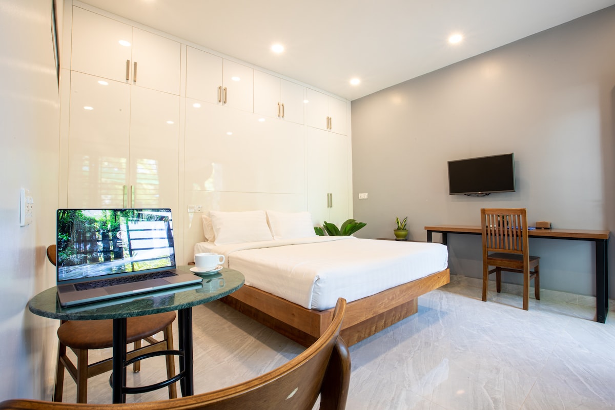 Nestled within a prime location enveloped by lush tropical gardens and a quaint local archaeological park, providing a tranquil retreat from the urban clamor. Adjacent to our premises lies the vibrant local market, offering an immersive Khmer experience teeming with energy and activity. Delight your senses with authentic fare and artisanal crafts, submerging yourself in the rich tapestry of local culture. We boast top-tier global internet connectivity and state-of-the-art remote work amenities.