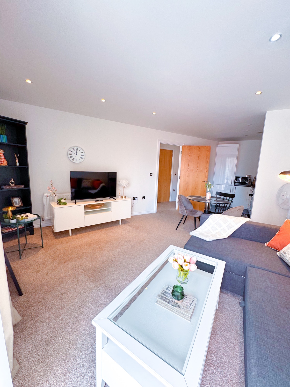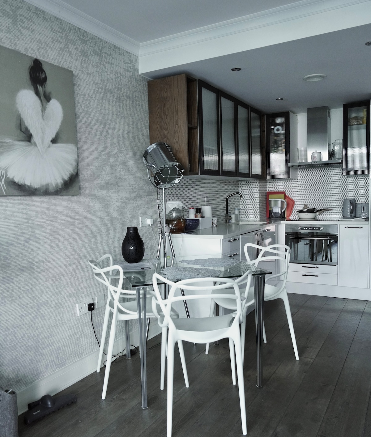 Welcome to my cozy and modern studio apartment, ideal for solo travelers or couples. It features a comfortable double bed, a well equipped kitchenette, and a dedicated work area with Ultra Fast Broadband and sit/stand desk. Large windows provide plenty of natural light. Relax on the sofa and enjoy 50” Samsung Frame TV in the bright, inviting space. Located in a vibrant area with easy access to shops, restaurants, and public transport. Experience the best of city living in this charming studio.