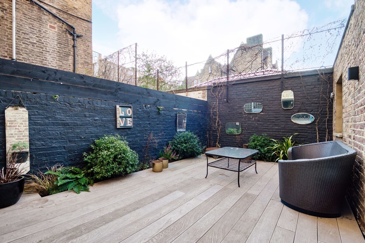 Escape the bustle of the city in this exceptionally peaceful, sunny and spacious Stoke Newington maisonette. Tucked in a historic mews and backing onto protected wildlife and woodland, you will get an exceptionally quiet night's sleep and workspace. The flat is stunning with huge windows onto the park & 2 luxury double bed and bathrooms. Next to Church Street's independent shops, bars and cafes. You're just a few stops from Liverpool street station and a gateway to the city. Excellent WiFi.