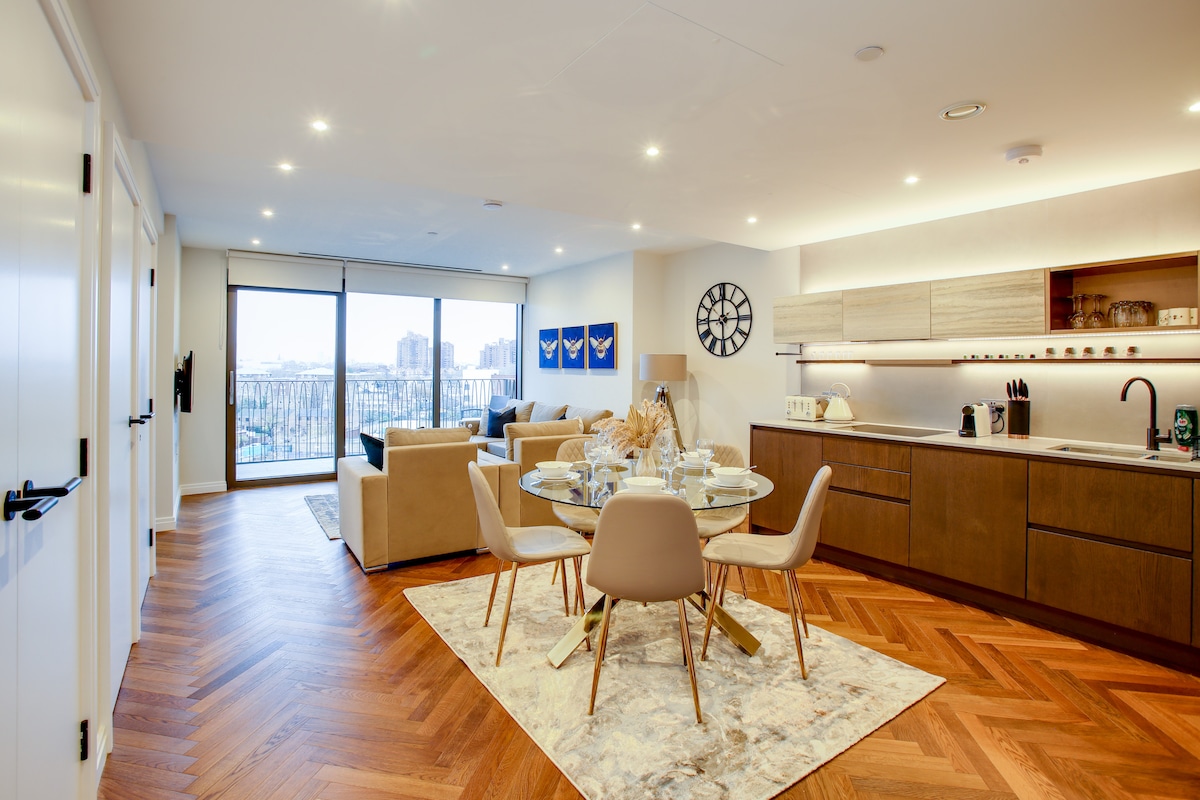 Stay in the heart of London in this luxurious 2BR, 2BA apartment overlooking the Thames. You’re steps from Battersea Power Station, Battersea Park, and minutes from Sloane Square and Buckingham Palace. Unwind in plush, comfortable beds, soak in the private hot tub, and feel the elegance of this vibrant, upscale area. Enjoy a fully equipped kitchen, fast Wi-Fi, and stylish interiors—everything you need for an unforgettable London escape.
