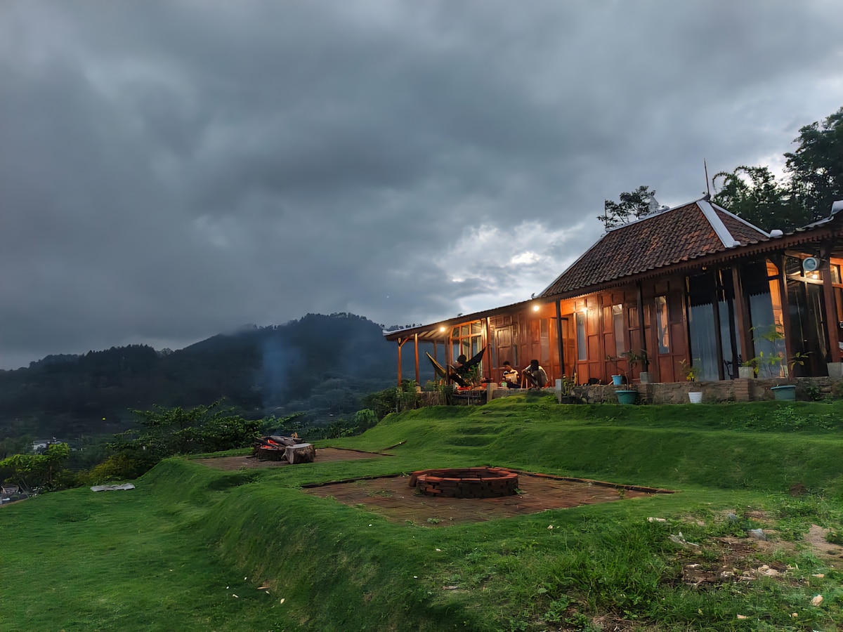 *Wooden House Nestled Among 3 Mountains* - 2 bedrooms, 1 indoor bathroom, 2 outdoor bathrooms, 1 full kitchen - Spacious yard — perfect for events up to 100 people & glamping - Garden area for gardening & flower arranging - City lights view at night & sunrise point - Surrounded by Mt. Semeru, Mt. Arjuno & Mt. Panderman - Peaceful atmosphere, cool air — ideal for families or gatherings