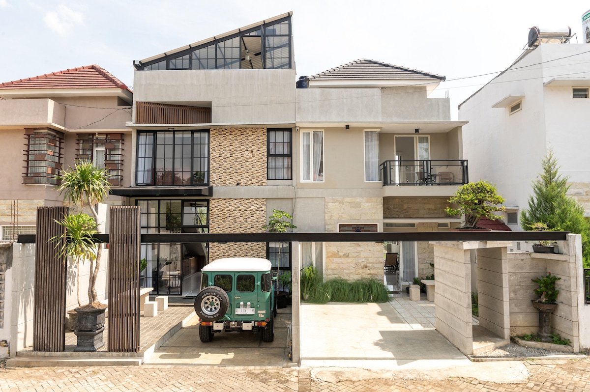 Relax with the whole family at this peaceful place to stay. Taman-Gazebo-Kolam ikan 3 Lantai (roof top-best view) 4 KM (full AC) 3 KT (Heater dan Shower) Wifi Ruang Keluarga (Smart TV-Karaoke) Dapur lengkap (peralatan-logistik) Balkon Luas (bbq - kolam karet anak) Kulkas-Dispenser 2 Unit Kebersihan yang utama, untuk kenyamanan keluarga anda