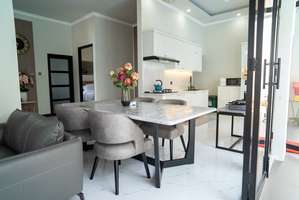 Welcome to SAMA House! Located in the heart of Batu, this stylish 6-bedroom villa is perfect for groups and family trips. Enjoy a spacious layout with all the comforts you need, including a rooftop with stunning 360-degree mountain and city views, a hot tub jacuzzi, and a BBQ area. Your stay includes 11 breakfast portions, parking for up to 4 cars, 24-hour security, a fully equipped kitchen, and more. Create unforgettable memories at SAMA House!