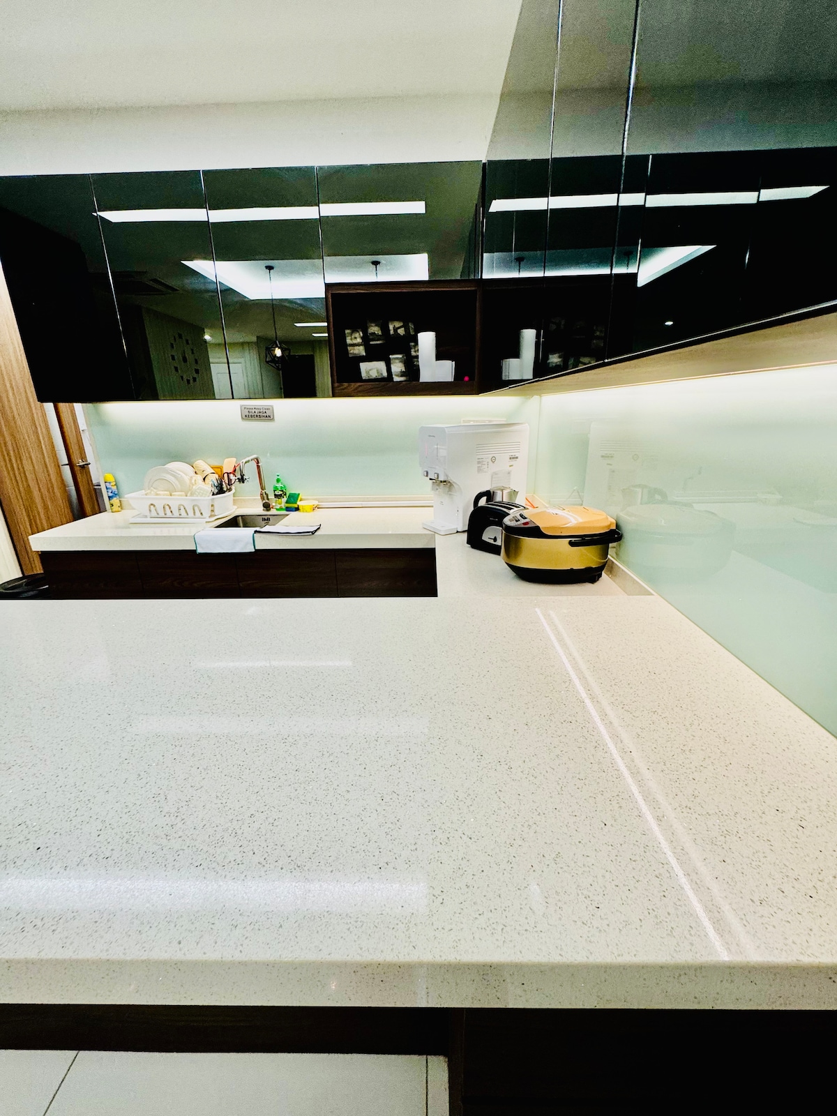 You will love this marina living for its serenity & tranquility. Relax in this cozy suite managed by a husband/wife team who are passionate in making your stay a truly feeling at home experience. The non-seaview suite features a balcony overlooking azure sky & greeneries of pool area. It is located next to a link-bridge to pool /gym/tennis court. For a breathtaking sea view, it is just steps away. Suites are situated at water front with shops/alfresco restaurants/outlets to serve your needs.