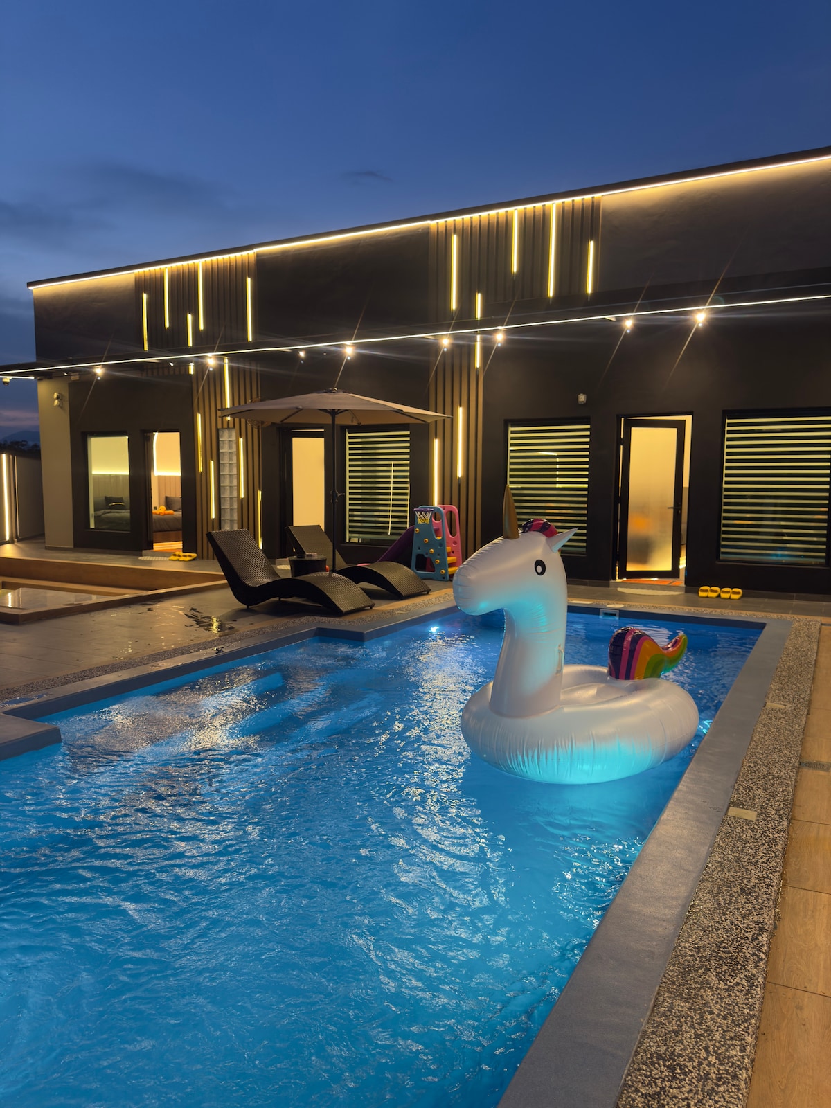 Welcome to LYL 108 Private Pool Villa! Experience a stylish and tranquil retreat with your very own private swimming pool — no sharing, no crowds, just pure relaxation. Perfect for families, friends, and corporate groups, our homestay offers 7 cozy bedrooms, 6 bathrooms, a fully equipped kitchen, and a spacious room with serene pool views. Whether you’re soaking up the sun by the pool or exploring the nearby attractions, LYL 108 Villa provides the ideal setting for a memorable stay.