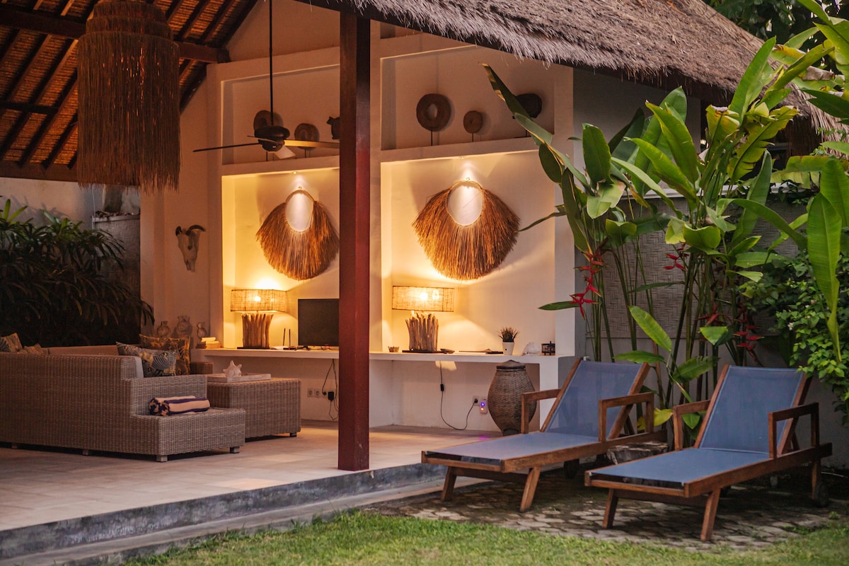 Kick back and relax in this calm, stylish space. Discover your oasis on Gili Trawangan! Villa Zoe offers everything for an unforgettable stay: relax by your private pool surrounded by tropical palms and cook in the fully equipped outdoor kitchen. Enjoy modern comfort in the spacious bathroom, stay productive in the cozy workspace, and sleep well in the luxurious king-size bed. The quiet location ensures privacy and relaxation—your dream vacation awaits!