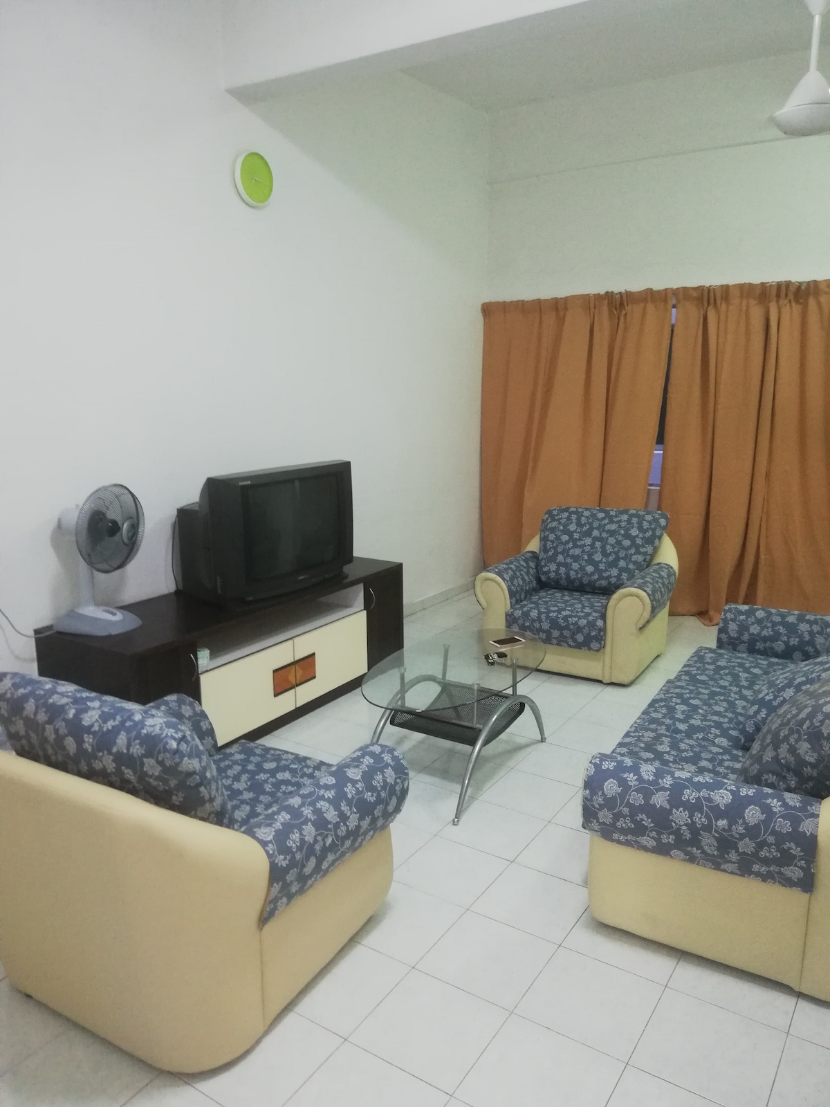 Keep it simple at this peaceful and centrally-located place. Rumah Pangsa Aras 3 (Tiada Lift) Muslim sahaja. Berkedudukan di Tengah bandar. Lokasi strategik. 3 bilik Ruang tamu ada aircond. 1. Bilik Utama ada aircond dan katil queen. 2. Bilik kedua ada kipas sahaja dan katil single. 3. Bilik ketiga ada kipas sahaja dan katil single. Disediakan juga; Coway, periuk nasi, seterika, peti sejuk, tv dan MyTV .