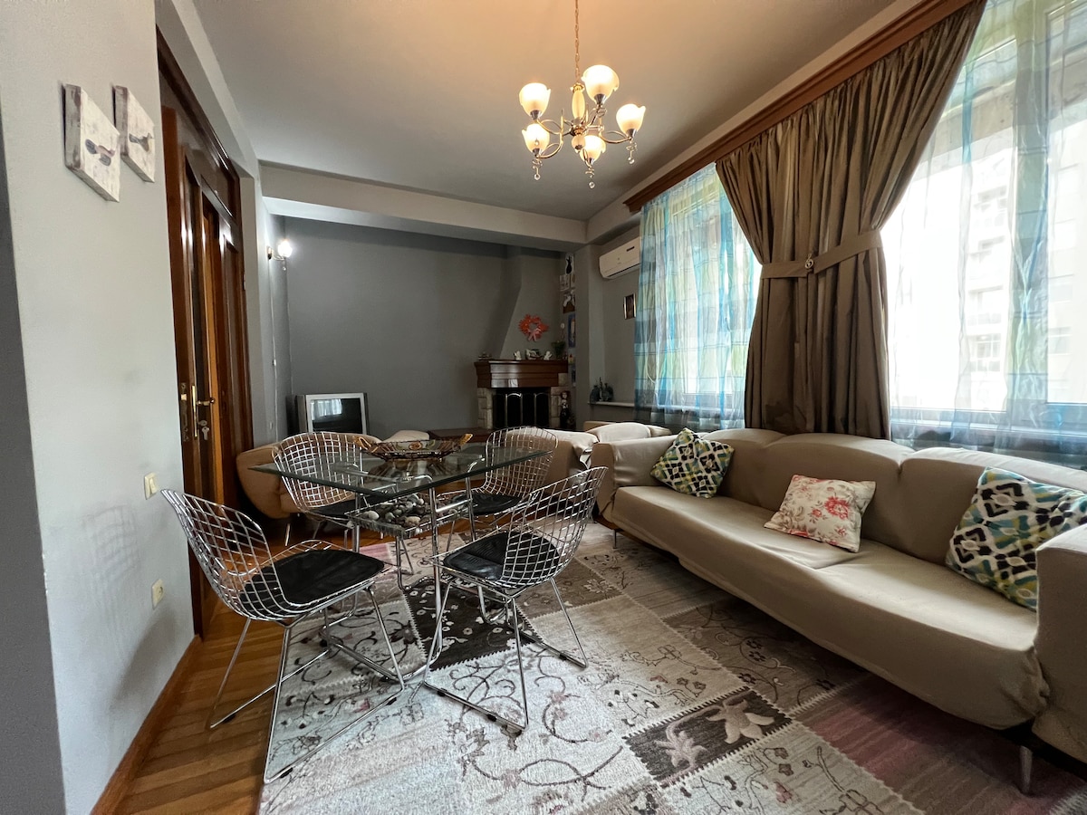Charming 1 bedroom & bathroom in the heart of historical Batumi, 5 min walk from beach and boulvard. The flat is located in front of central entrance of 6 May park. The unit includes a refrigerator, air conditioner, washing machine, iron and hair drier. Free street parking. You can easily visit by walk the sights of historical city, restourants, boutiques and local food markets. The host is open to answer all your questions in English/Russian/Turkish languages.