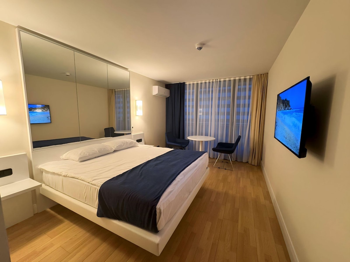 Experience luxury comfort in our spacious Executive Suite, ideally located just 250m from the beach. Unwind in a luxurious king-size bed and enjoy modern touches like a Smart TV, high-speed Wi-Fi, a private bathroom, and a balcony. Enhance your stay with access to premium facilities—including a seasonal pool, spa, gym, and sauna—available as part of select packages or for an additional fee. Complimentary tea/coffee, and essential amenities are provided to ensure a refined and relaxing stay.