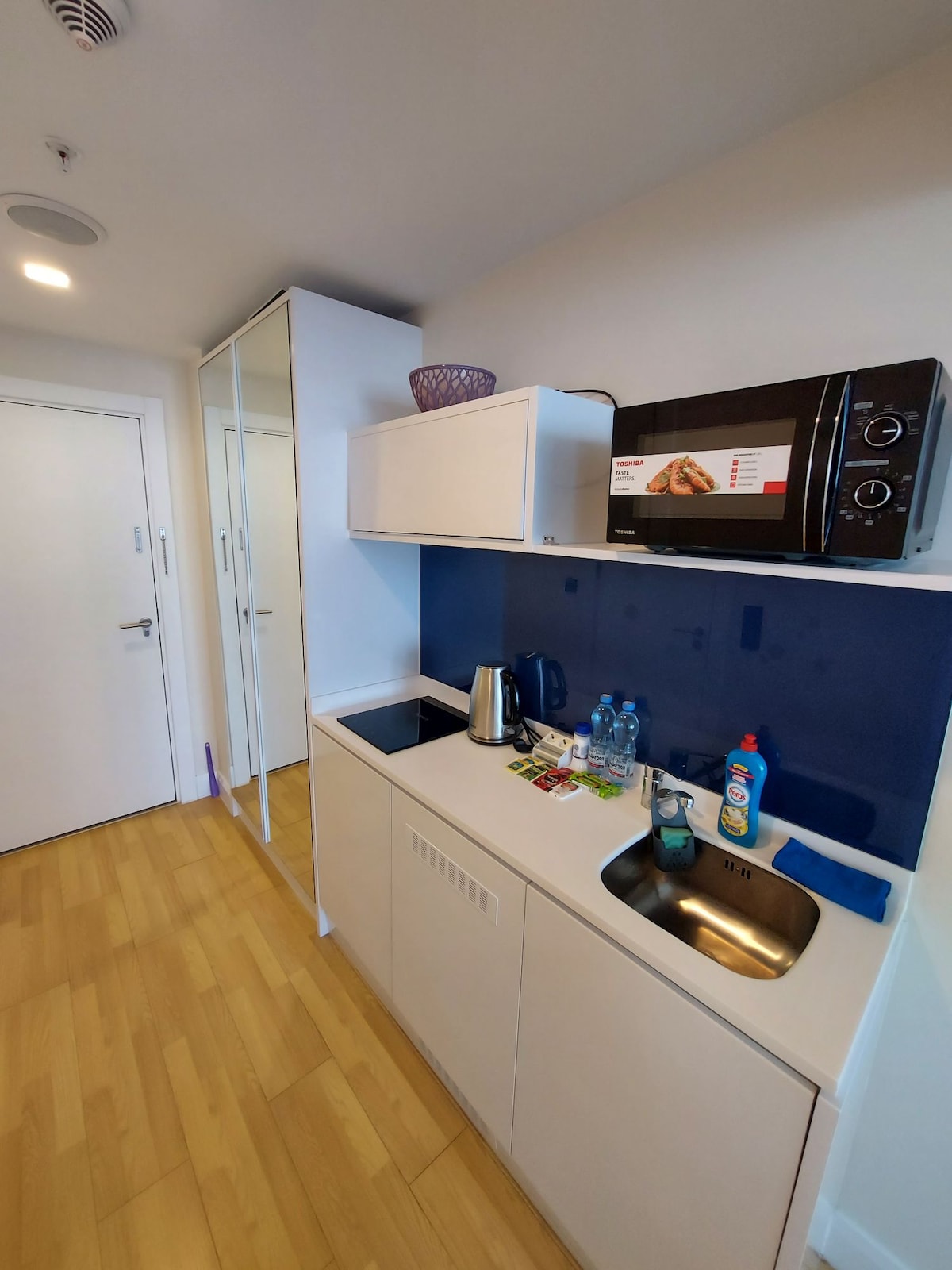 The apartment is situated on the 14th floor of the Courtyard by Marriott building. It has beautiful views of the sea. The apartment is fully equipped with everything you need for living, cleaning, and cooking. The building has its own swimming pool, spa, and restaurant, among other amenities. Within walking distance of the apartment, there are shops, restaurants, and bars. It's just a 5-minute walk to the private beach dedicated to the Courtyard. Enjoy your stay at the apartment!
