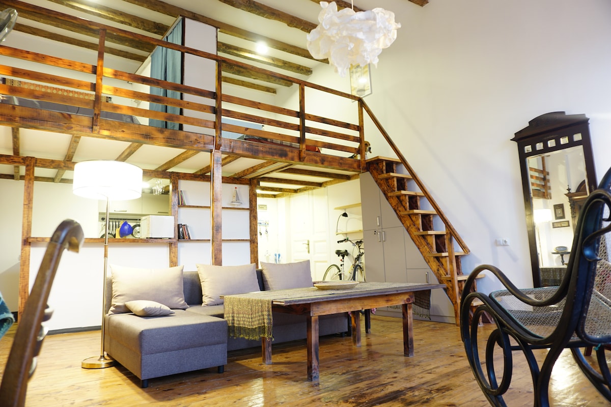 Located on the top floor of a cultural heritage building in central Batumi, this spacious apartment offers a rare 40 m² rooftop veranda with panoramic views of the city. Just 5 minutes from Seaside Park and 7-10 minutes from the beach. Walking distance to Europe Square, Old Batumi, cafés, restaurants, and key attractions. A unique stay that combines historic charm with a prime location. This home offers space for up to 9 guests. Things to note: - No elevator – No parties or loud noise