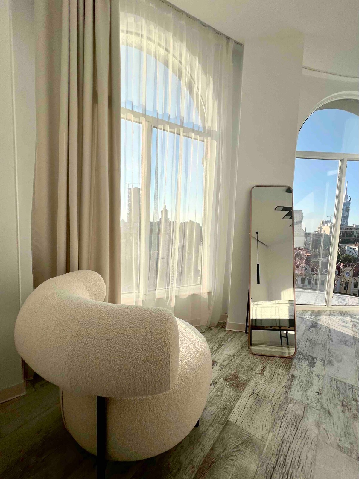 The luxurious 125-s/meter Bellvue residence in the heart of Batumi,breathtaking views of the lake and the sea, that is perfect for families, friends, or coupes..The living area has built-in speakers, telescopes and a large screen for entertainment. The well-equipped kitchen includes a washing machine, dishwasher, and fun appliances like a blender and popcorn machine. Enjoy three cozy bedrooms with 3 king beds,special access to Hilton facilities such as a luxurious pool, spa, and fitness center.