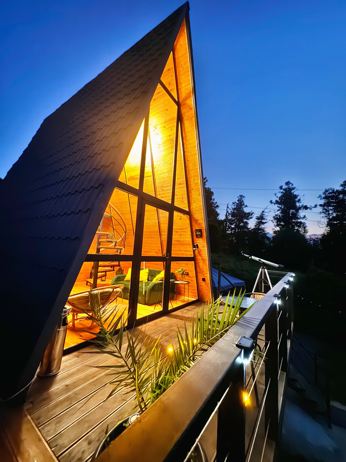 Peaceful A-Frame Cottage Near Batumi | Stunning Views 🌊🏞️ Escape the city and unwind at our cozy A-frame cottage just 12 km from Batumi, located in Akhalsofeli village near Gonio-Sarpi Perfect for families or small groups — the house accommodates up to 5 guests. Fully equipped with everything you need: • Warm blankets, iron, hairdryer, kitchenware • Large private yard with hammocks, swings & a cozy covered seating areawatching the sunset in the garden, this is your quiet corner near Batumi 💫
