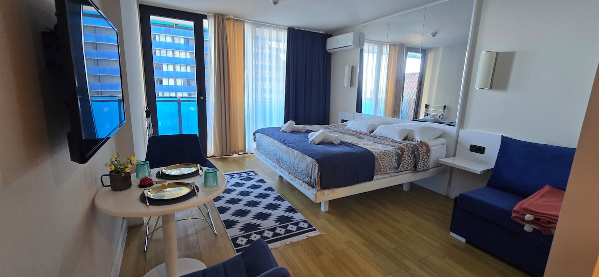 This stylish and unique studio offers a memorable stay in the heart of Batumi. Located in a peaceful area close to the sea, it features full furnishings and everything you need for a comfortable and relaxing trip.