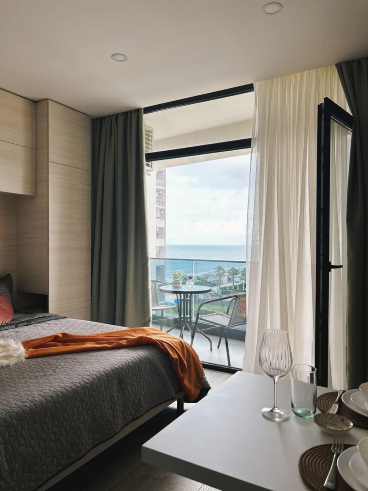 This stylish and unique place sets the stage for a truly memorable trip. It’s ideal for remote workers seeking a quiet and comfortable environment outside the city, with stunning views — the sea on one side and mountains on the other. Please note that we offer a 24-hour reception, free parking, and room cleaning services every three days. Sea view is available from every apartment.