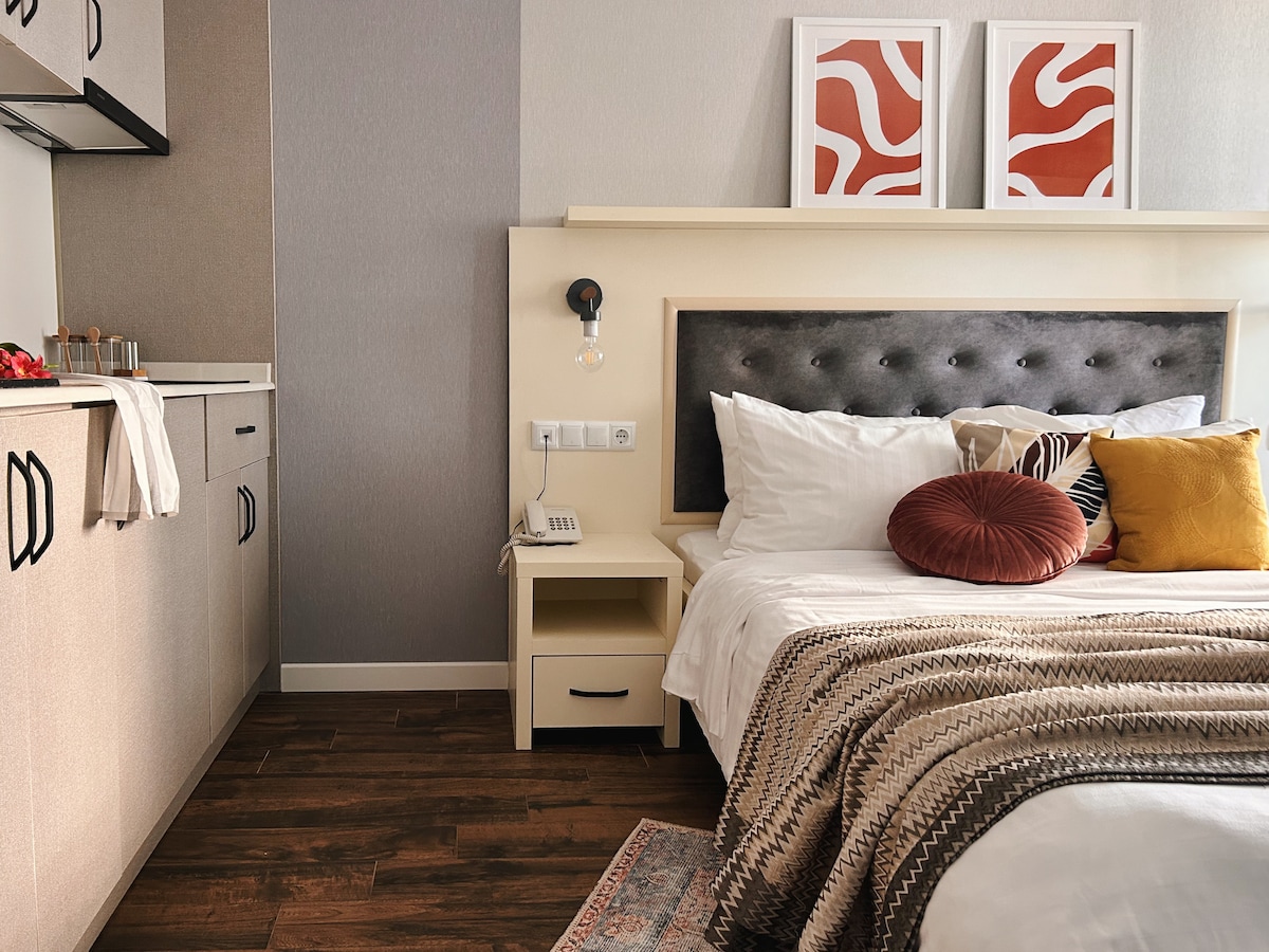 Sunset Studio | Crowne Plaza – relax with a sea view To the sea - a few steps, to the center of Batumi 10 min by car, to the Botanical Garden - only 2 km. This is the place where you will: - meet the sunsets with a glass of wine, - enjoy the clean air surrounded by green mountains and admire the authentic Georgian houses, - swim in the sea, - to look at the hustle and bustle of the city from afar and realize that it doesn't concern you.