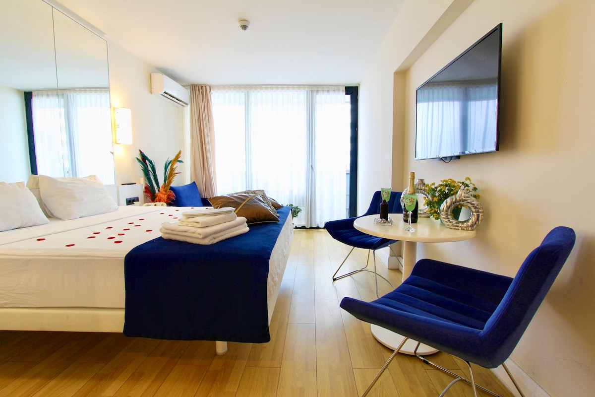 Stunning Apartment in a new Skyscraper (commissioned in 2023) with breathtaking panoramic sea views , in the same building with Ramada Plaza Hotel, Casino Billionaire , Victoria SPA complex, restaurants, a Spar shop. Near the beach and dancing fountains on Lake Ardogani. The apartment has everything you need for a comfortable stay, including a kitchen, cooking utensils, refrigerator, washing machine, air conditioning, iron, ironing board, hair dryer, large TV. Super comfortable 180 mattress.