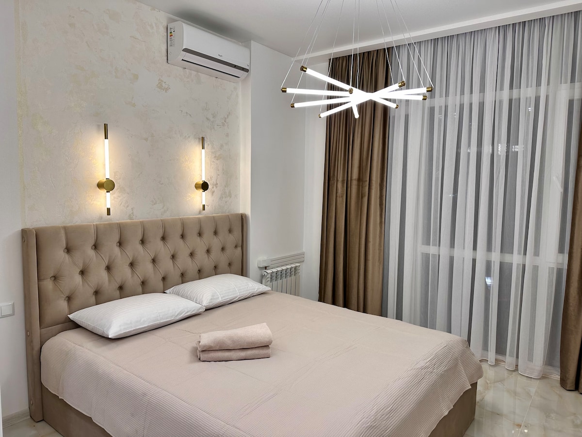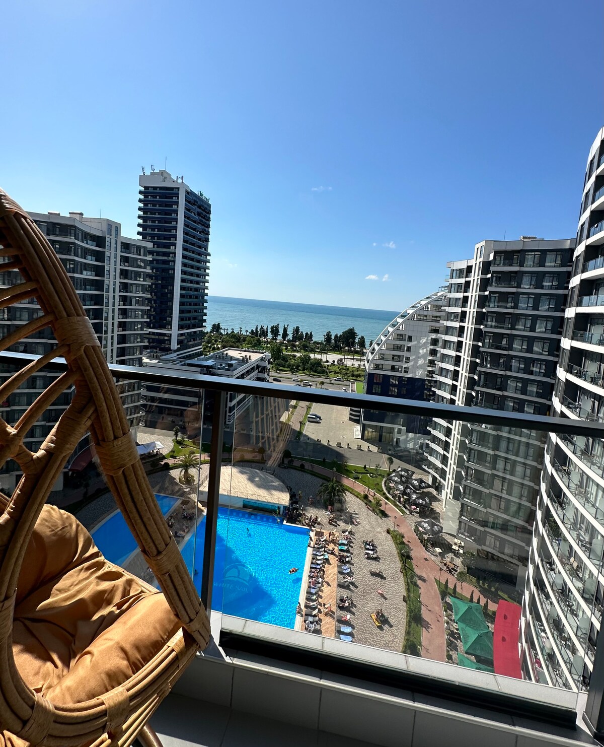 Modern spacious premium studio on the 17th floor with stunning views of the sea, park, mountains and pool. The apartment has everything you need for a comfortable stay: dishwasher, capsule coffee maker, washing machine, toaster, microwave, etc. The apartment is located in the best complex in Batumi with a large territory, swimming pool, sports and playground in the courtyard, restaurants and a shop. Near the shopping center, casino, sea and park. The airport is 5 minutes away by taxi.