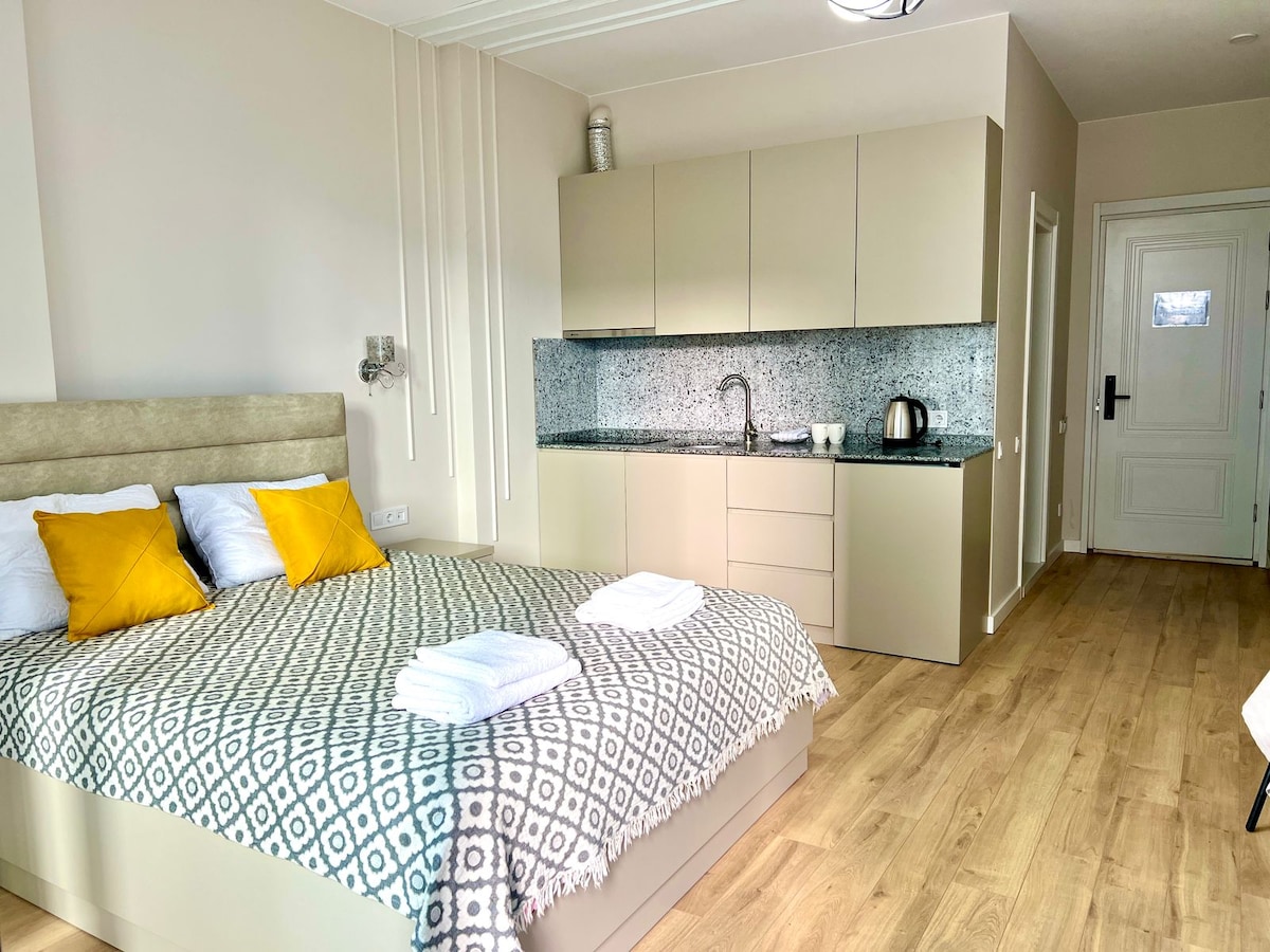 Steps from the sea, built for comfort and calm. Just bring your swimsuit and good vibes. ✔ 2-5 min walk to the beach & vibrant New Boulevard 🏖️ ✔ Gym, sauna & pool in the building — 20% off for guests (extra fee) 🏋🏻♀️💧 ✔ Private parking on request (extra fee) 🅿️ ✔ Comfy bed with blackout curtains 😴 ✔ Full kitchen 🍳 ✔ Washer, iron 🧺 ✔ Cozy coffee shop right at the entrance—perfect for your morning cup ☕✨ Perfect for remote work, creative flow & relaxation 🦦🌊