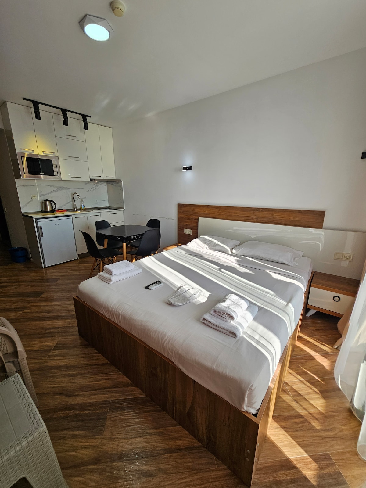 Добро пожаловать в уютное гнездышко современного комфорта. Наш апартамент воплощает в себе исключительный стиль и функциональность. Открытое пространство наполнено естественным светом, подчеркивает уют апартамента, удобство кухни и пространство комнаты. Хотите полюбоваться восхитительным закатом солнца из апартамента, с бокалом вина или горячим чаем, тогда это то что вам нужно. Живописный вид из номера не оставит ни кого равнодушным. Развлекайтесь, отдыхайте и наслаждайтесь каждым моментом.