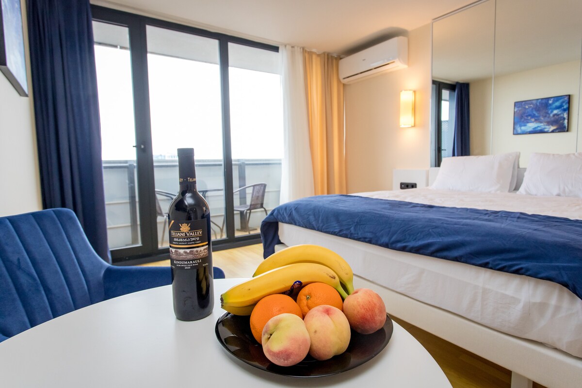 Our facility is decorated with simple and elegant colors. It has everything you need to live in and the located in city center. We offer not only sea but also city, lake and mountain views. At the same time our guests have opportunity to taste local delicacies free of charge, including delicious Georgian wine, cheese and dessert. Our facility is new and we will have special surprises for our first guests.