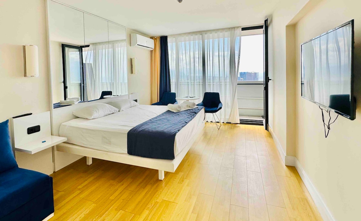 Самые высокие Просторные апартаменты на первой береговой линии г. Батуми! До пляжа 🧜♀️⛱️50 метров🔥 С потрясающим видом панорамным видом с высоты птичьего полёта на море🐬, город и горы🔥 ➕ Незабываемые закаты ➕Холодильник ➕Стиральная машинка ➕Кондиционер инверторного типа ➕СВЧ печь ➕Телевизор ➕Сейф ➕WI-FI ➕Кровать king size ➕Кресло- кровать ➕Балкон с террасной мебелью ➕Чайник ➕Фен ➕Утюг ➕Гладильная доска ➕Сушилка для белья ➕Посуда Уникальное жилье для незабываемых воспоминаний🔥