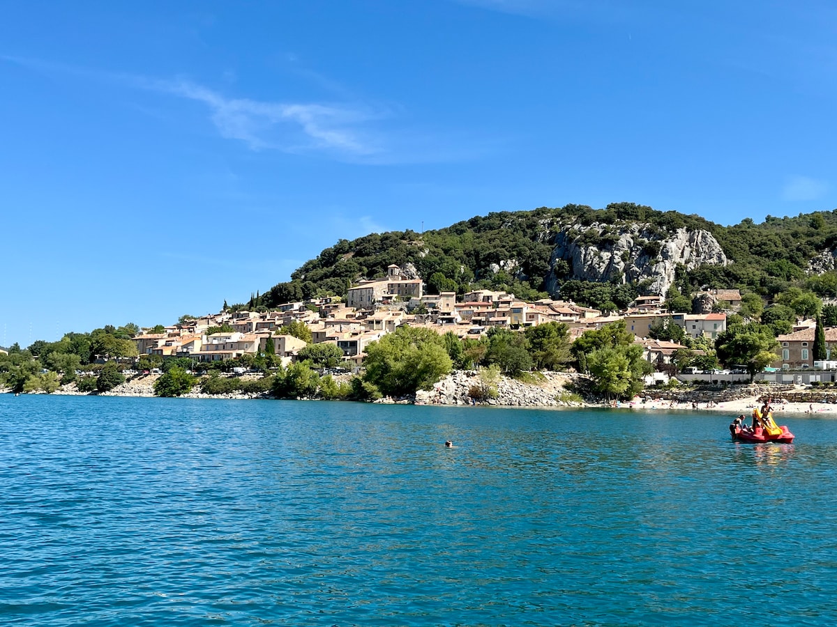 🏠 Jolie maisonnette en pierre de 42m2 située en haut du village de Bauduen à côté de l’église. Ancienne bergerie, elle est adossée sur un gros rocher apparent qui en fait son originalité. 🪨 Le quartier est calme et offre une belle vue sur le lac depuis la chambre. La plage ainsi que les commerces et restaurants sont accessibles à pied en bas du village (5minutes en descendant, 10 en montant : gambettes musclées assurées ! 👟)